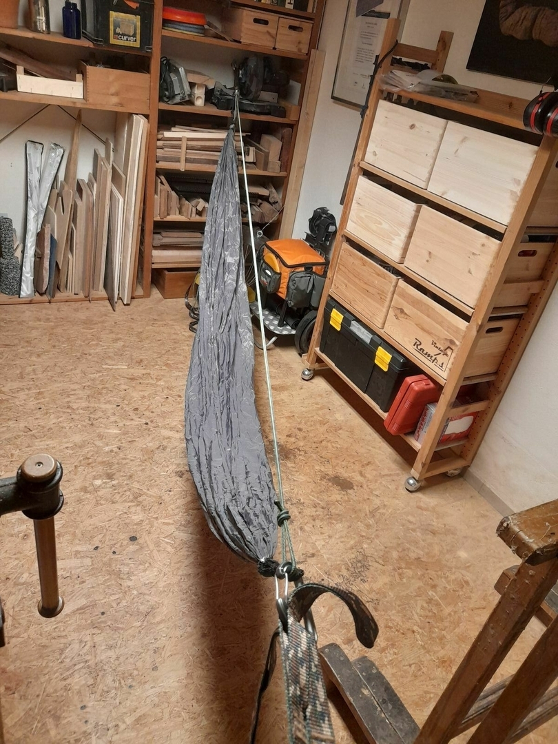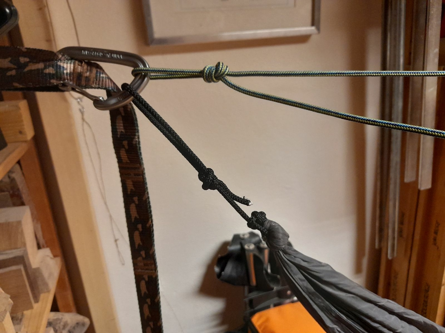 Ich bin online auf "Hängemattenverkürzer" gestoßen, die die Gesamtlänge verkürzen während die Liegefläche gleich groß bleibt (was sicher seine eigenen Nachteile hat...). Auch dachte ich, dass es eine Kinderhängematte tun könnte oder man eine kurze Hängematte selbst näht. Meine Frage an Euch wäre: Wie könnte realisiert werden, mit so wenig Platz eine Hängematte zu montieren?