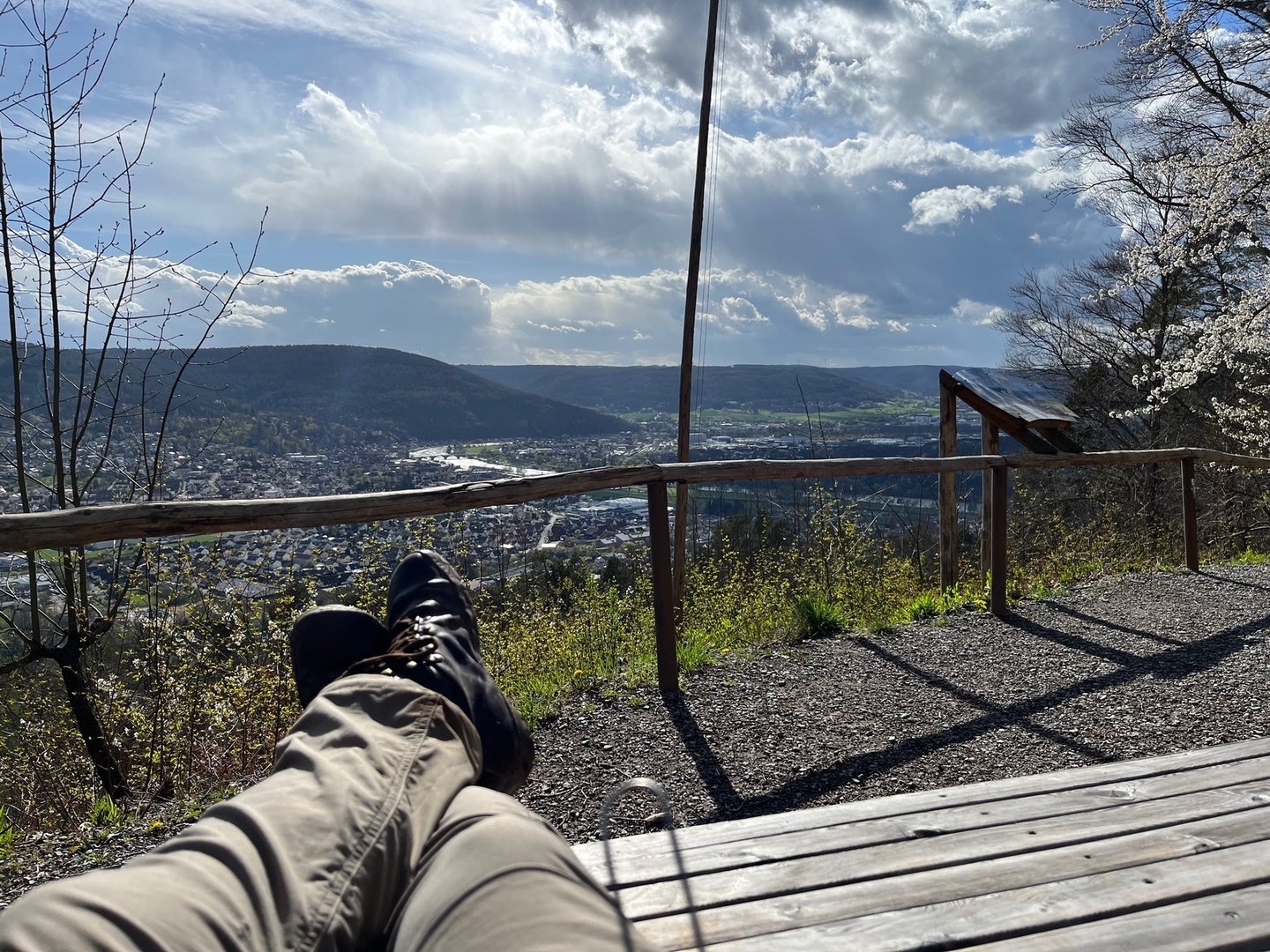 Um ca. 5 hab ich dann Pause gemacht, etwas gekocht und den Blich auf die Orte Miltenbach und Bürgstadt genossen.
