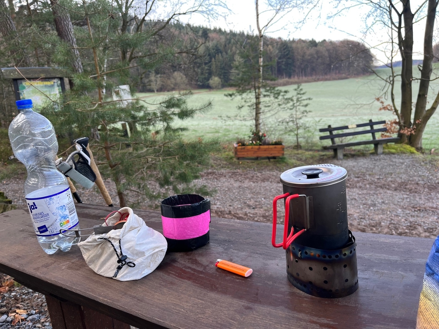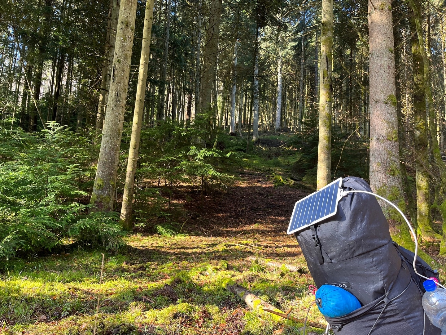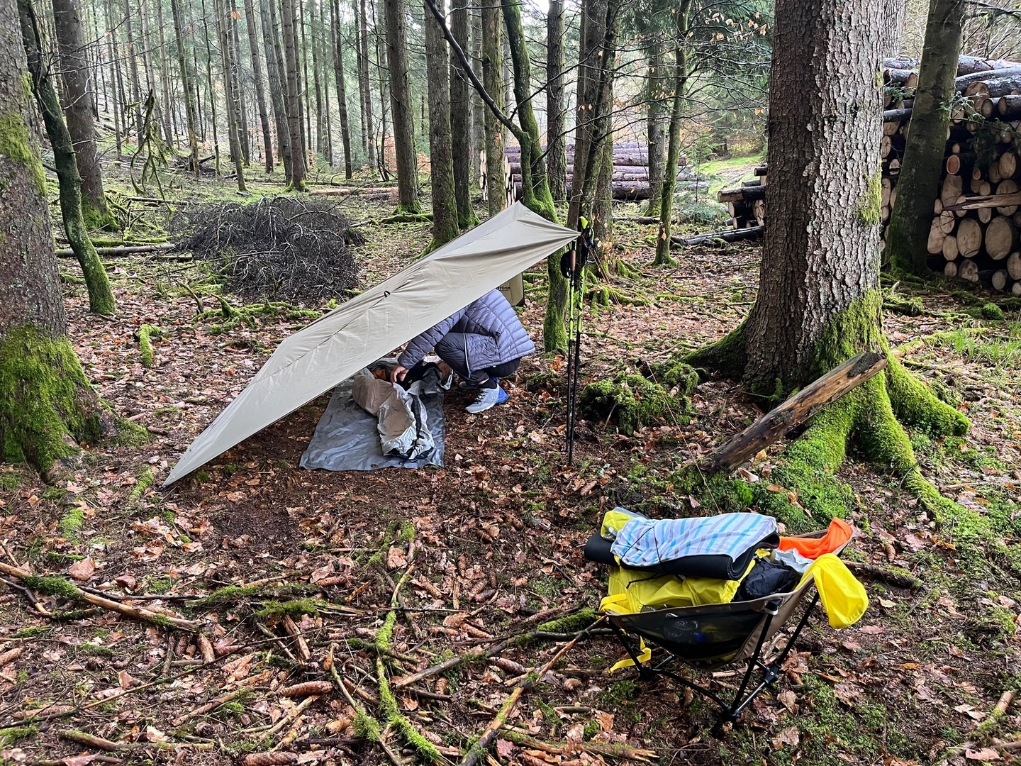 Scheiß Wetter war angesagt und ich wollte meinen Schirm etwas besser kennen lernen. Dazu mein STS Nanosil Ponchotarp, das auch noch getestet werden wollte. Das neue Solarpanel war auch dabei. Insgesamt viel zu schwer 🥵. Aber wie gesagt, war es mehr Testlauf als Ausrüstung für die Tor und die Gegend.