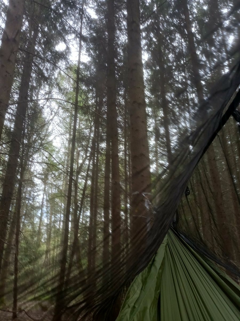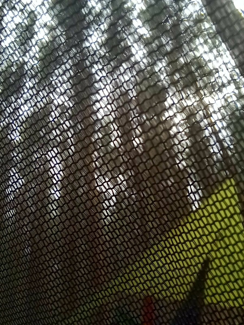 Das Netz ist ein kostengünstiges feinmaschiges Netz aus Polyester. Die Form ist sehr gut, die Funktionalität ist definitiv gegeben. Die Nähte sind alle sehr sauber und mit Einfassband versehen. Eine seperate Ridgeline ist dabei und ein Packsack ist am Netz genäht (leider unter). Wenn die Hängematte eine Ridgeline hat, dann braucht man natürlich keine seperate Ridgeline. Der Packsack kann man leicht vom Netz trennen. Im Gegensatz zu vieln Budgetnetze ist dieses feinmaschig. Auch gegen Zecken, ab Nyphengröße, bestimmt effektiv. Vielleicht ist es für jemand deshalb interessant.