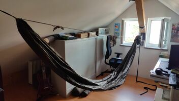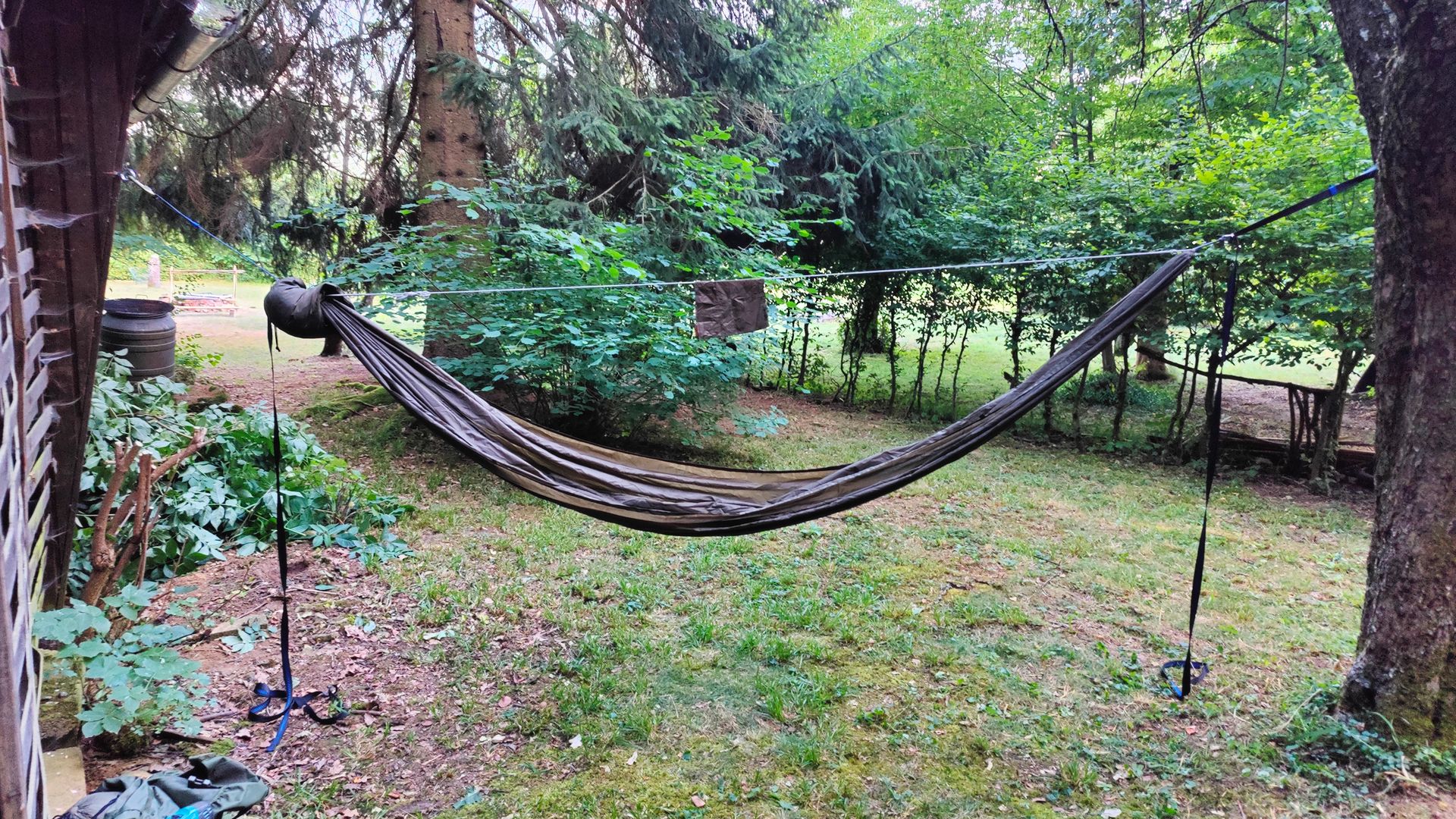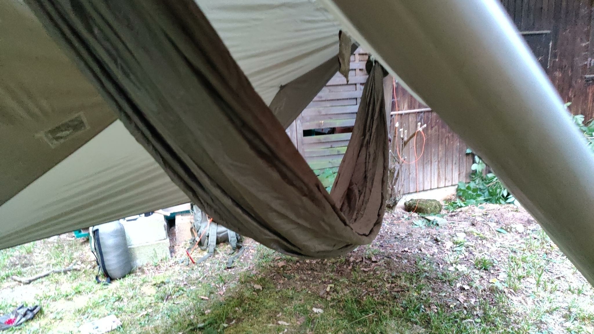 So Probeaufbau war so Mittel gut. Irgendwie hängt die Matte etwas zu hoch aber wenigstens richtig glaube ich. Eventuell hänge ich sie nochmals an einer anderen Stelle auf und sehe ob sie da besser hängt.