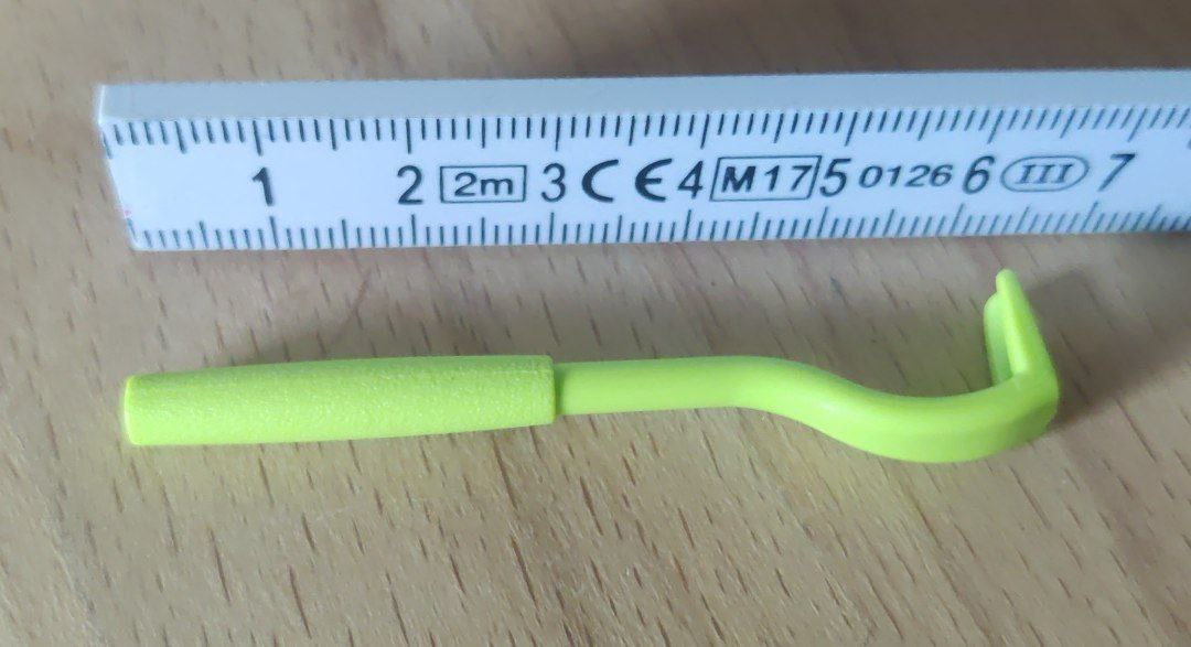 Die Schlinge ist nicht ganz Kugelschreiber groß (ca. 12cm lang) und wird auch ähnlich bedient.