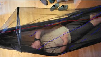 Wenn ich bequem in der Hängematte liege, bin ich viel weiter "brasilianisch" eingedreht, als das Einschubfach vorgibt. Außerdem hat sich herausgestellt, daß das Isomattenfach für "Spannungen" sorgt. Ich kann´s nicht richtig beschreiben, aber am bequemsten liege ich entgegen der Richtung verdreht, wie das Einschubfach.