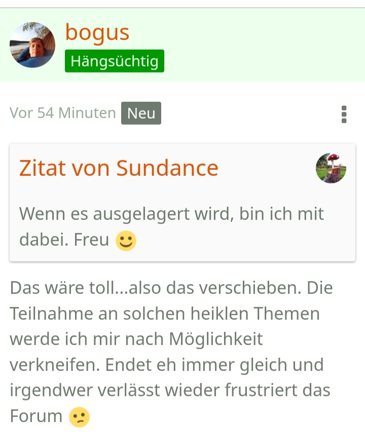 Sehr schön! Endlich mal wieder ein Thema mit Potential, welches irgendwann nach Moderation verlangt!