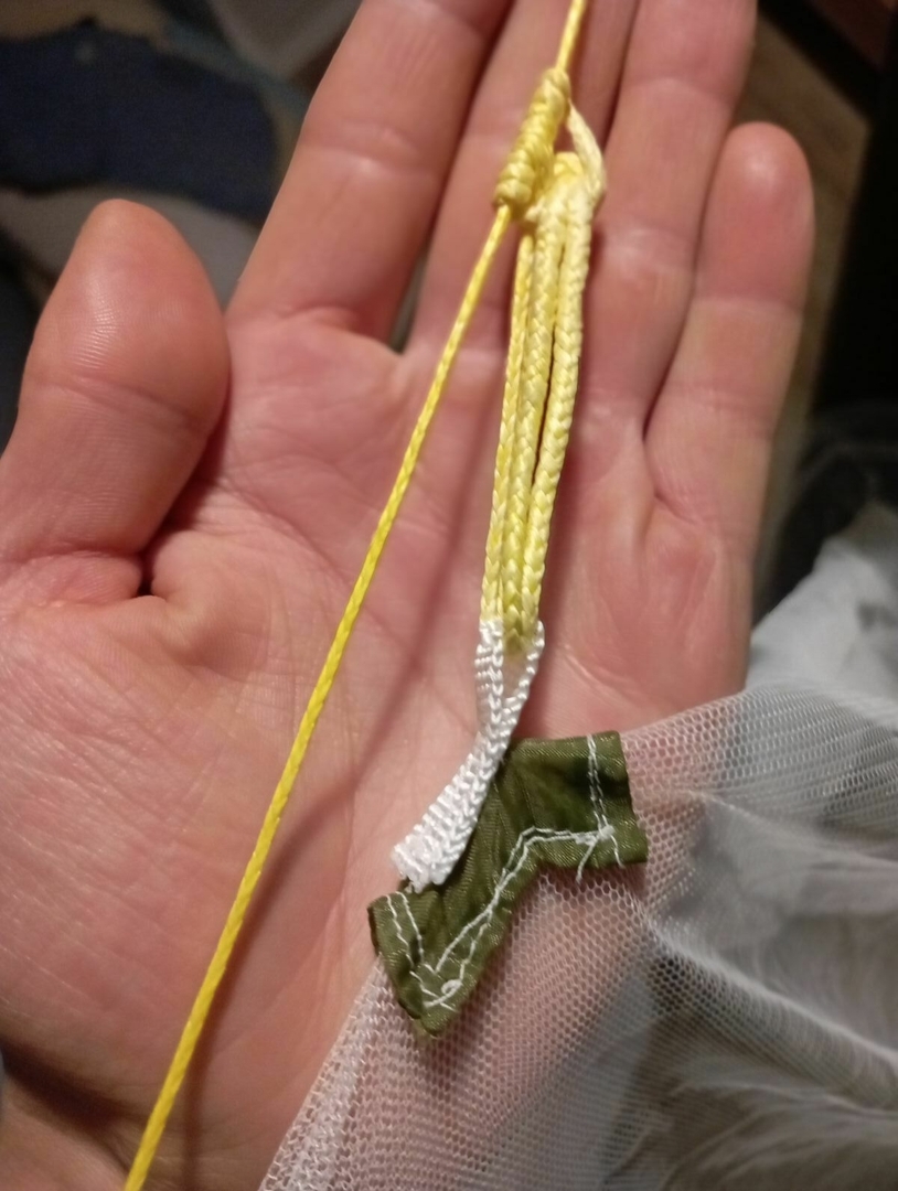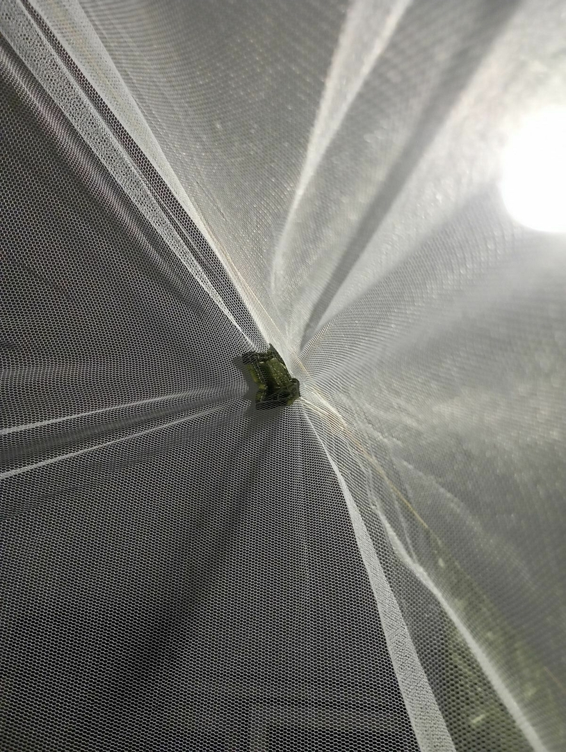 Es handelt sich bei dem unbekannten Objekt um eine DIY Version eines HUG (Half Bug Net) Ich hatte heute viel Zeit und dachte mir, dass ich mir mal einen Mückenschutz nähe. Ich übernachte nämlich gerne im Garten in der HM, nur stören mich die Mücken😕