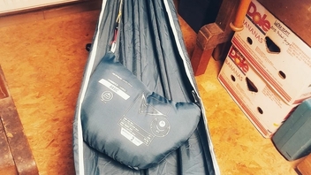 Mit Polsterwatte gefüllt, dient sie mir in der Matte nun als Kopfkissen.
