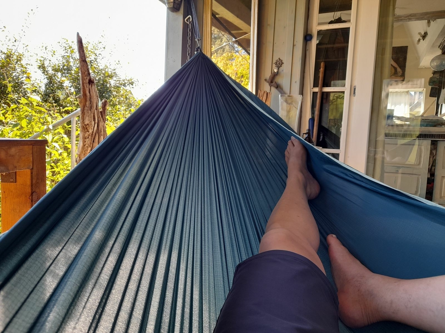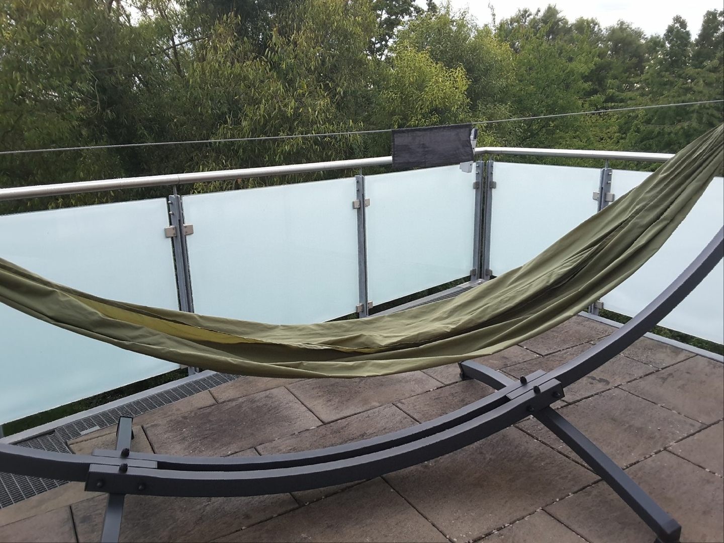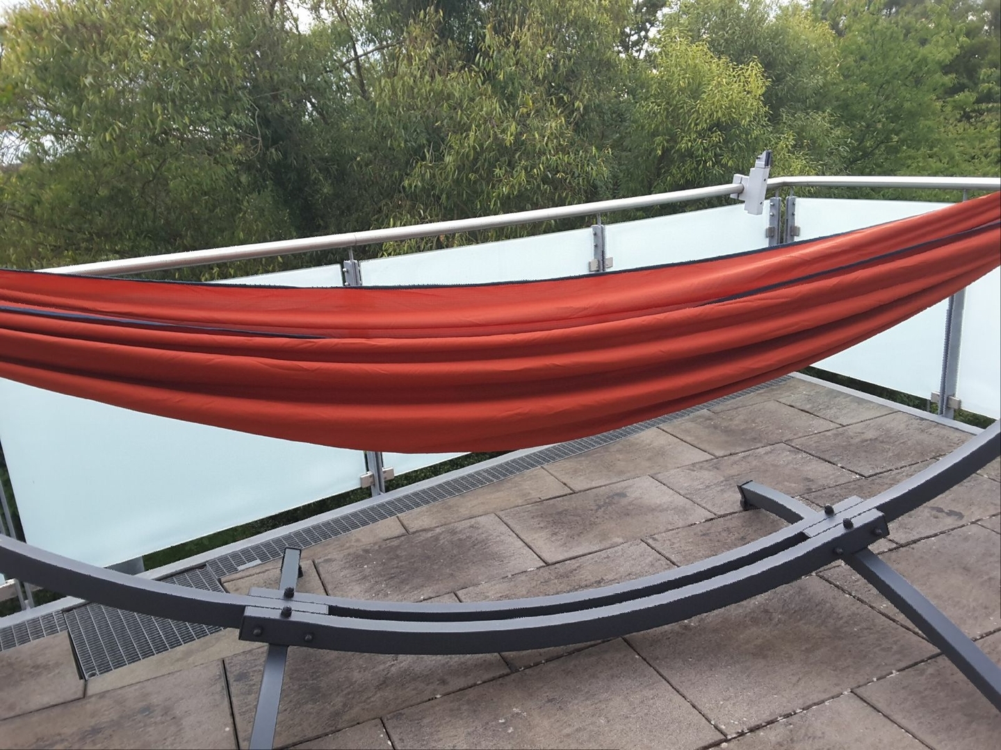 Mit ihren 300x150cm scheint sie mir genau richtig für den Nachmittagsausflug oder sonstigen Kurzhang. Einfach aufhängen und fertig.