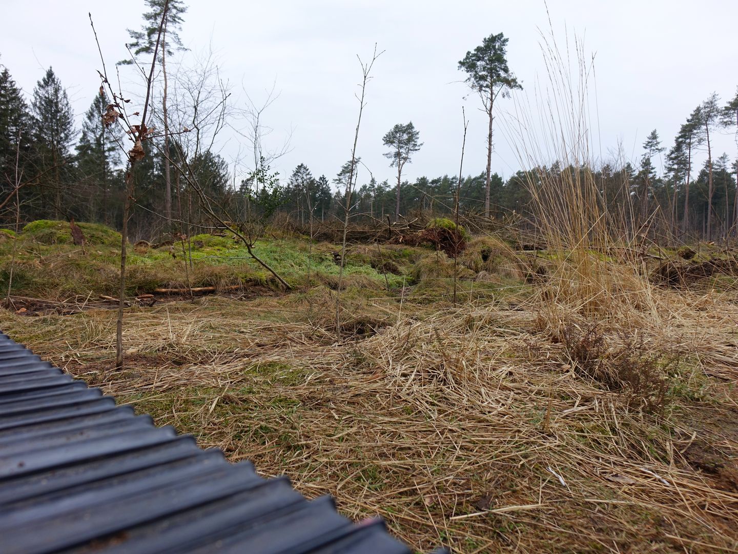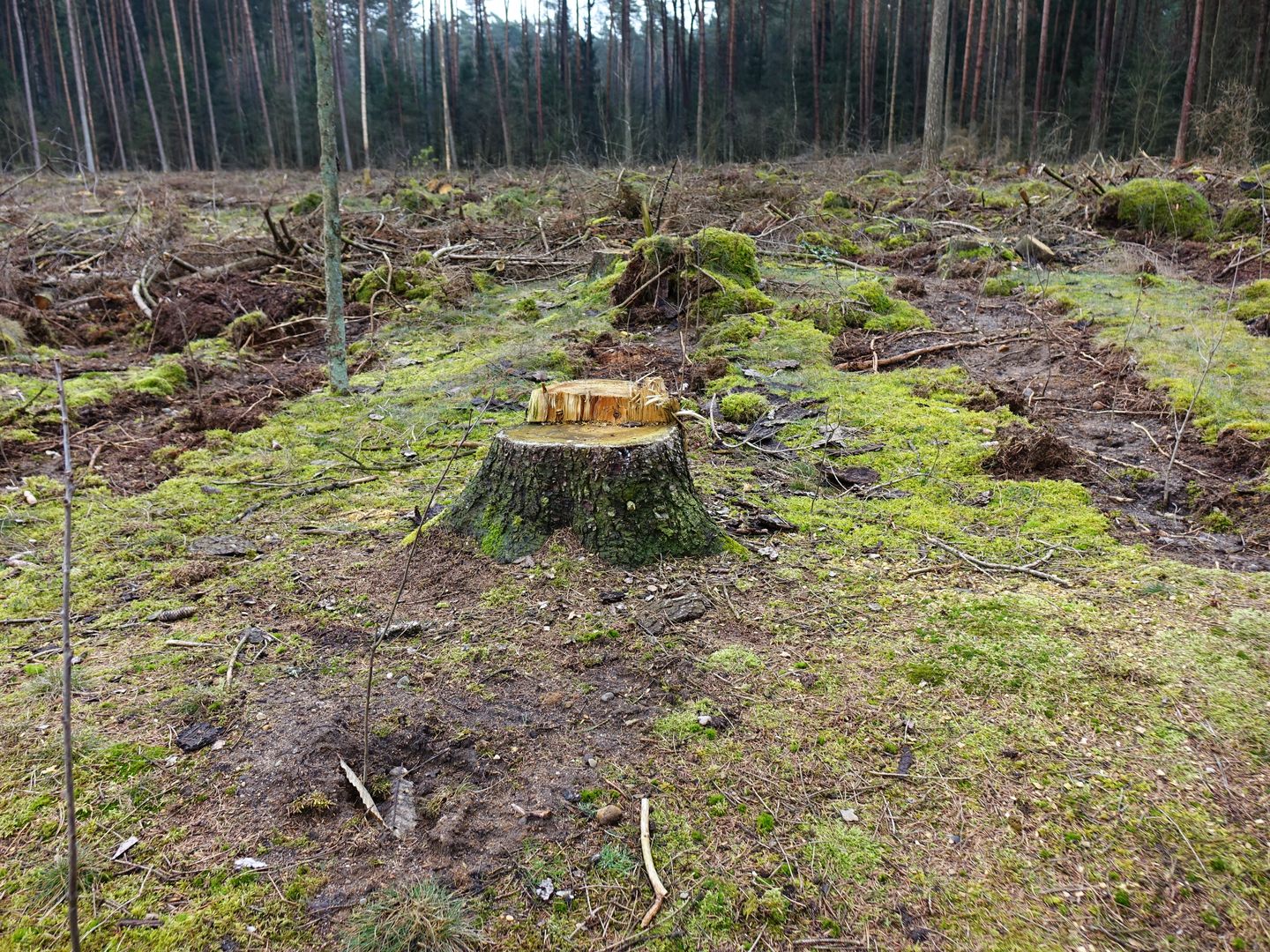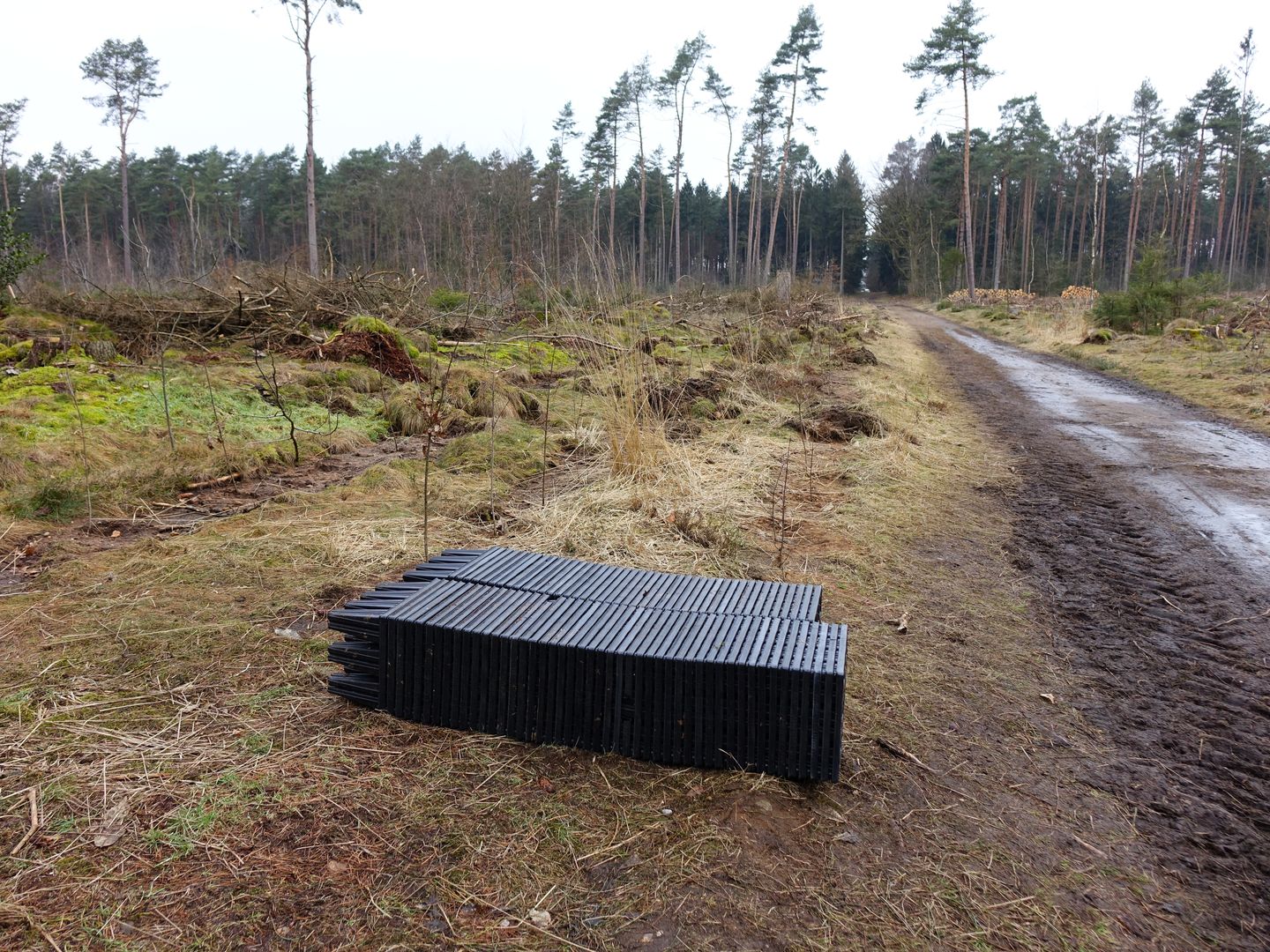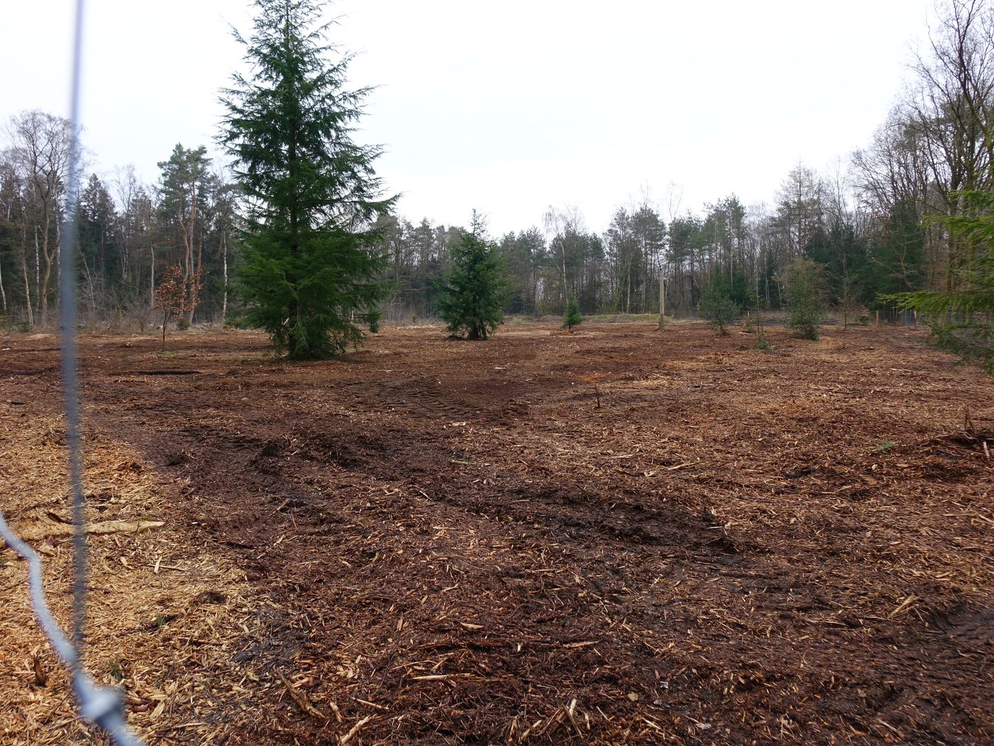 Ich muss mich meinem Harvester-Trauma stellen.Eingezäunte Waldfläche. Heftig geräumt und egalisiert.