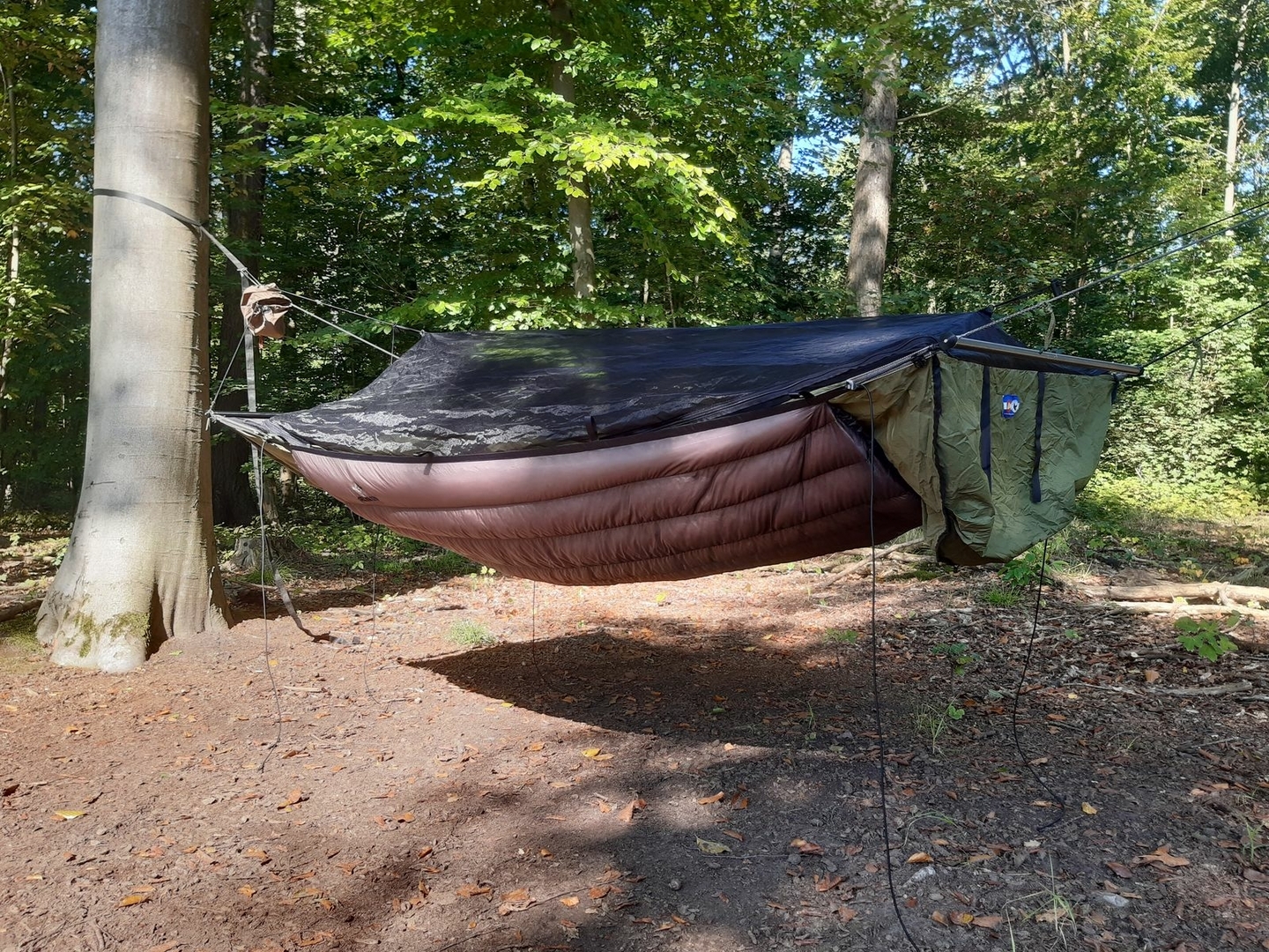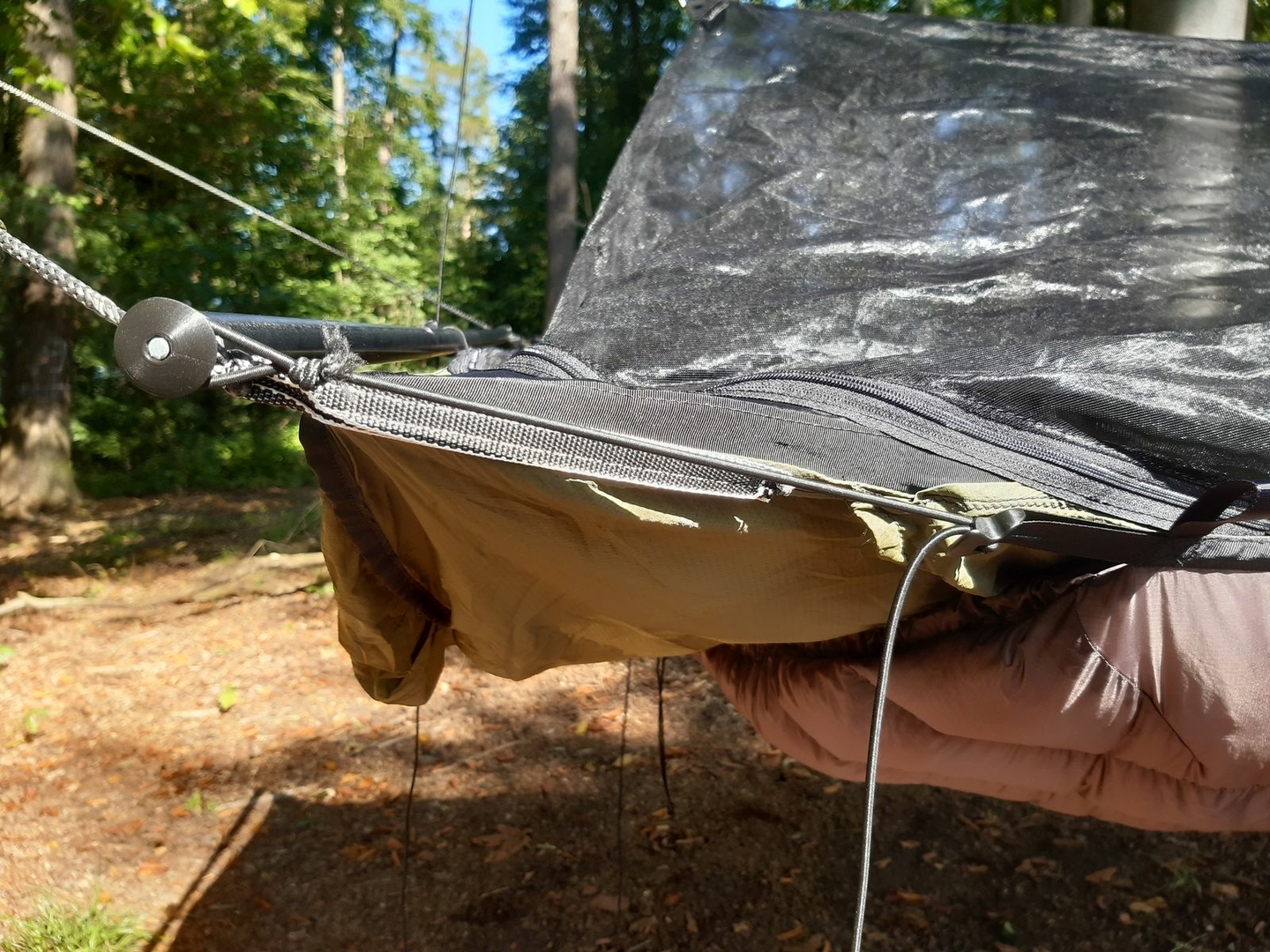 Danke für den Test. Meinst du es könnte funktionieren den UQ vor und nach den Saddlebags jeweils mit einem Kamsnap/Snaply/Knopf an der Hängematte zu fixieren?