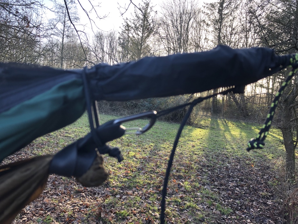 Vorsicht mit der Tie Out Befestigung wenn es regnet Achhisan ..........wenn der Tie Out Karabiner höher hängt als die Befestigung an der Hm kann dir Wasser entlang der Gummischnur in die Hm laufen.