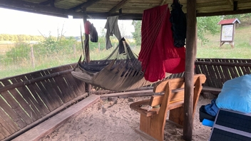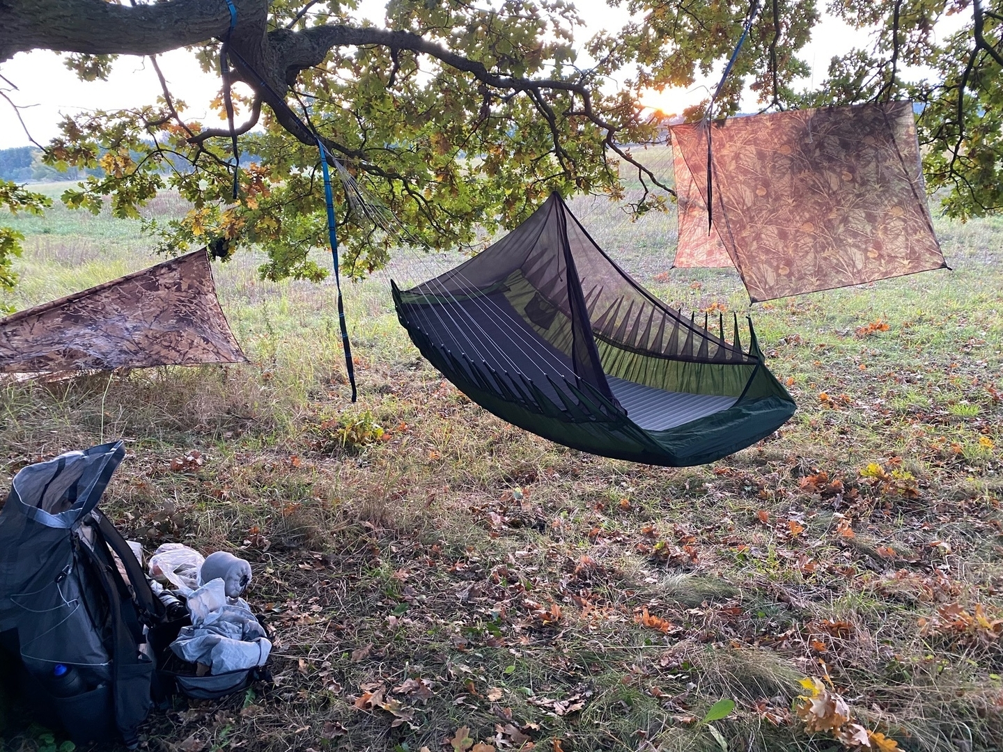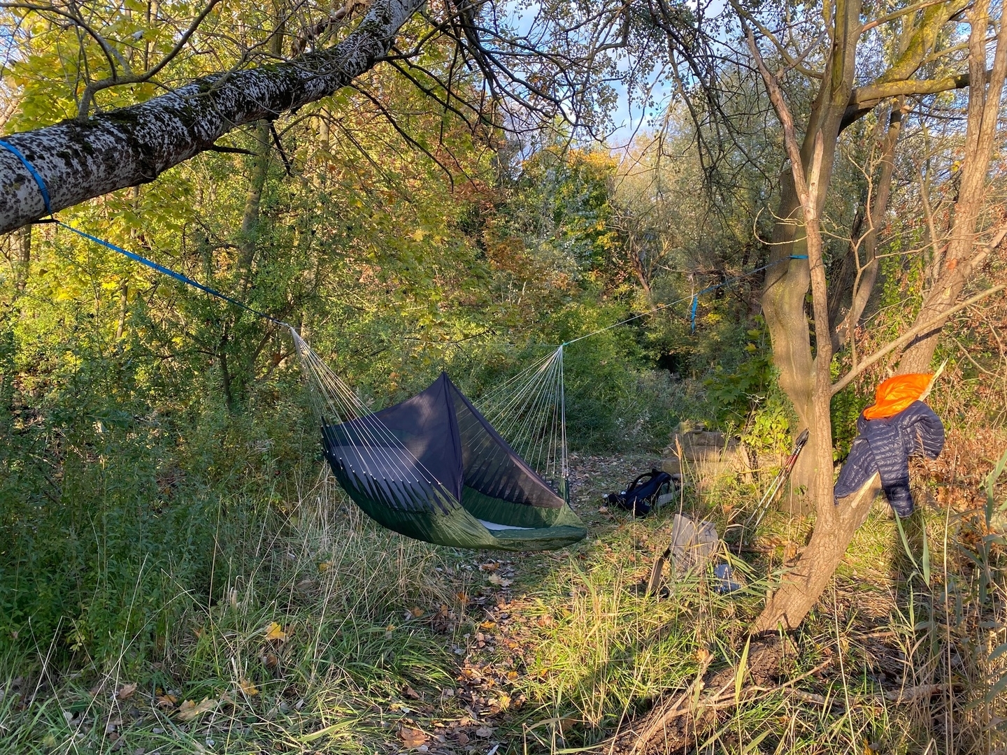 Die Challenge ist komplett mit Hängematte zu übernachten, das könnte auf Grund von Zivilisationsnähe und im Südwesten von Berlin auch Waldarmut spannend werden.