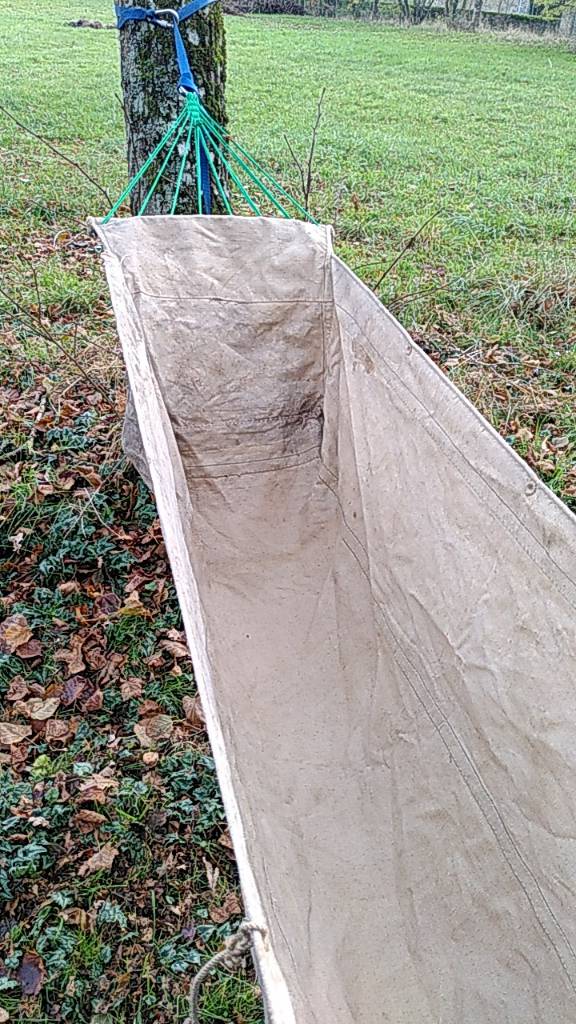 Der Stoff war einfach zu alt. Trotzdem interessantes Projekt. Mich würde interessieren wie es sich in einer dicken Canvas GE, mit regulären Maßen so liegt. Könnte mir vorstellen, dass es durch den dicken Stoff bequem und unkompliziert (ohne UQ) ist darin zu schlafen.