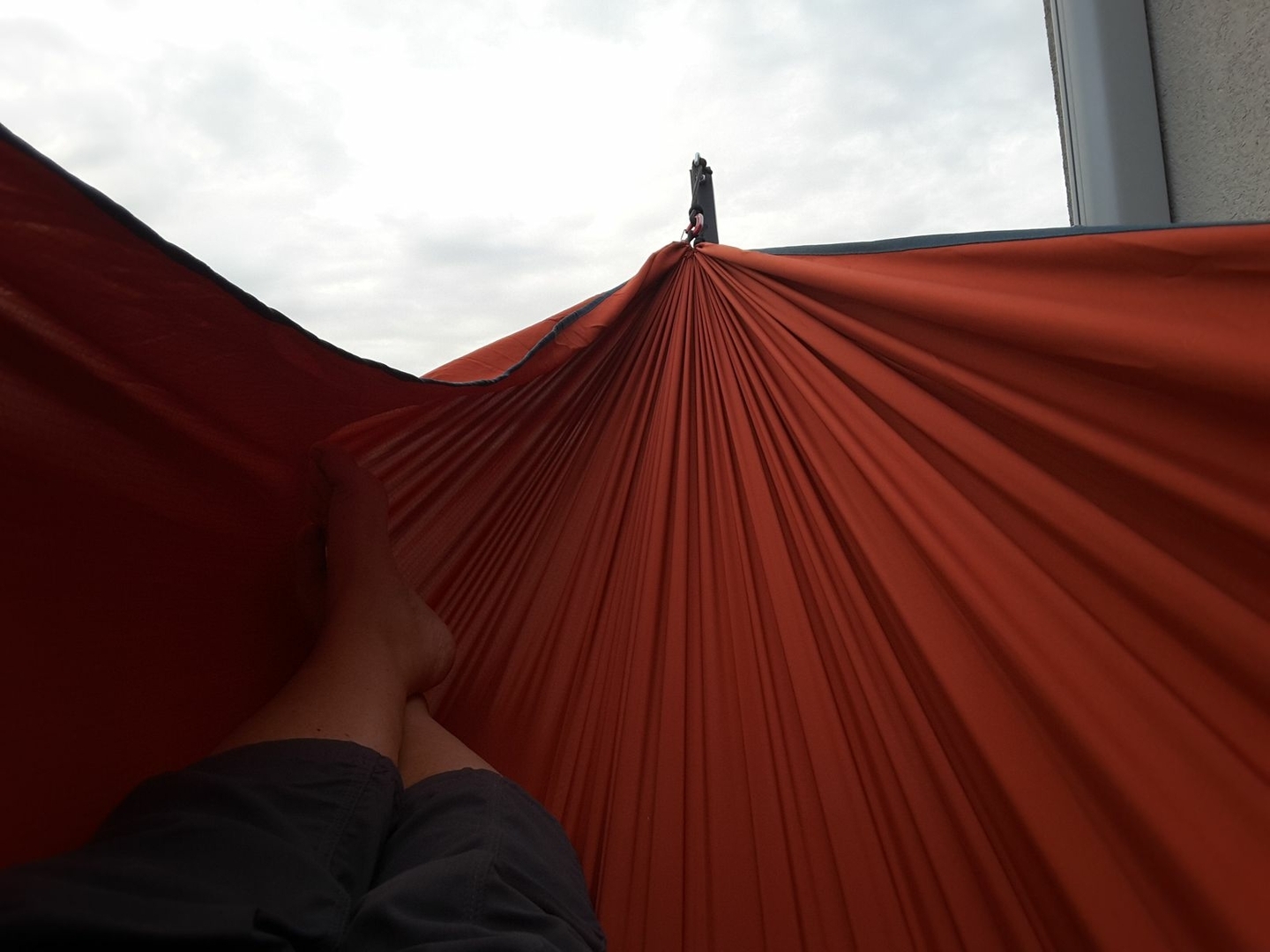 - Mein Setup: Hängematte, bezogene Bettdecke als Wärmeisolation von unten (ich friere leicht), weitere Bettdecke von oben (ich mag nicht so gern Schlafsäcke).