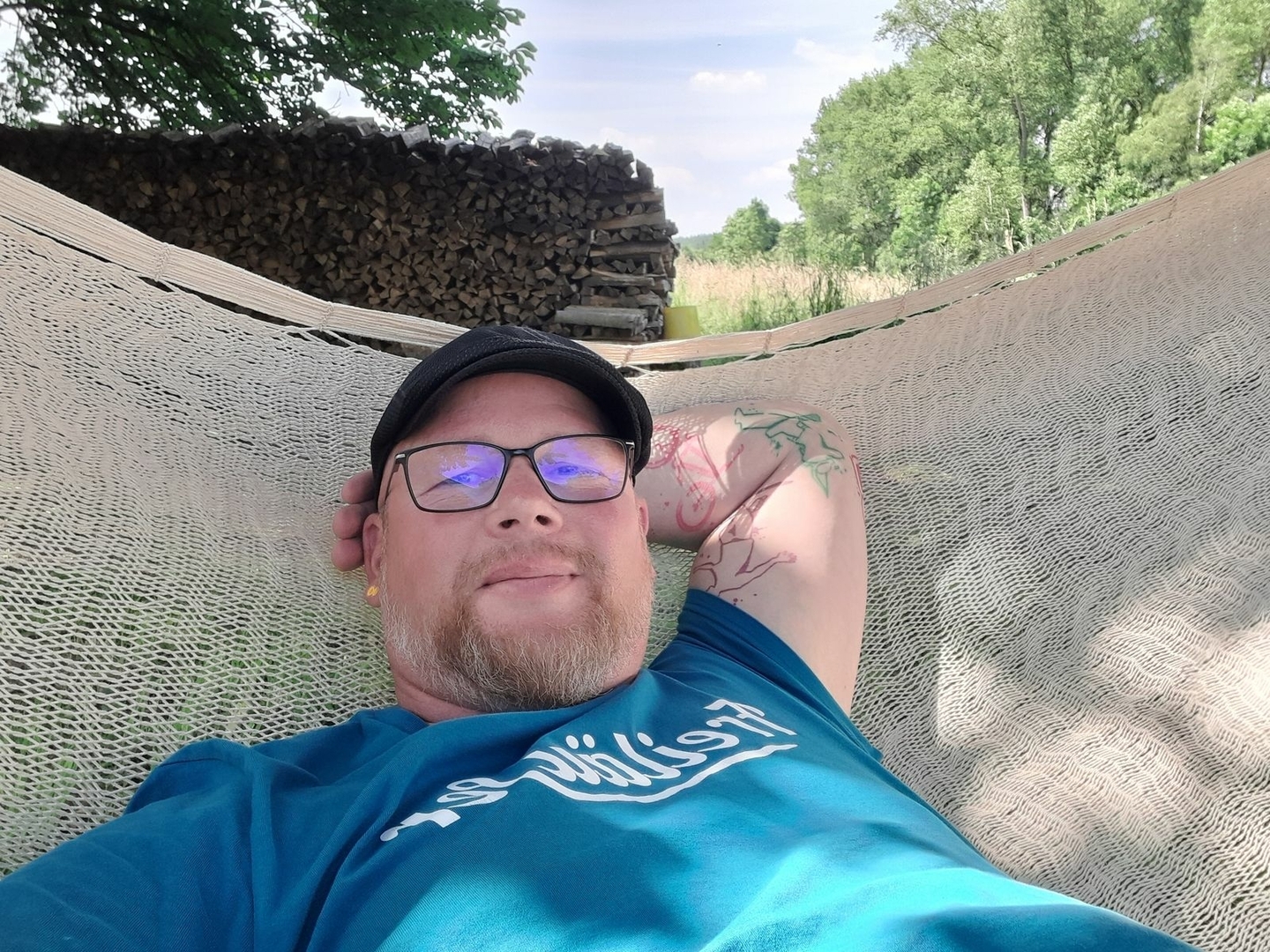- Mittlerweile ist die Matte sehr verzogen. Die Seiten kommen sehr hoch. Ich kann sie nur mehr schwer diagonal aufspannen. Manche Nächte sind die Knie in die falsche Richtung durchgebogen - das ist schmerzhaft. Für den Kopf habe ich auch keine rechte Lösung - ich habe immer öfter Nackenschmerzen und damit auch Kopfschmerzen. Da passt etwas nicht und das will ich ändern. Ich liebe es, in Hängematten zu schlafen.