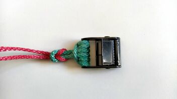 Das rote Ende ist der CL von meiner Matte. So kann ich einfach die Klemmschlösser an jede Matte befestigen, oder eben meine Loop Aliens, wenn es besonders leicht sein soll.