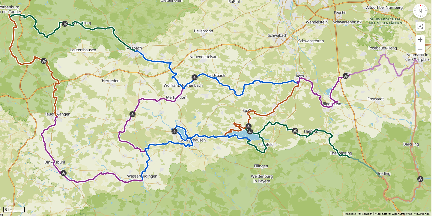Ein Beispiel für so eine Route wäre diese: https://www.adfc-radtourismus.de/fraenkischer-wasserradweg/