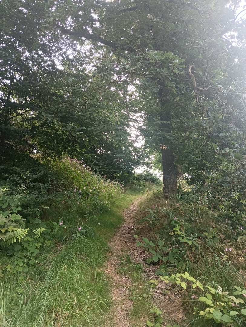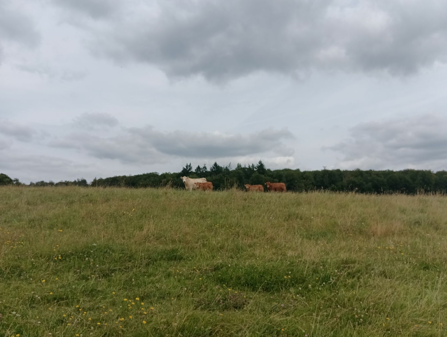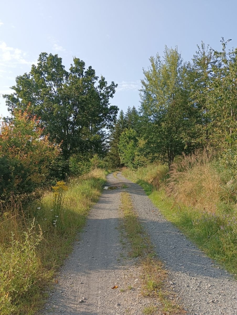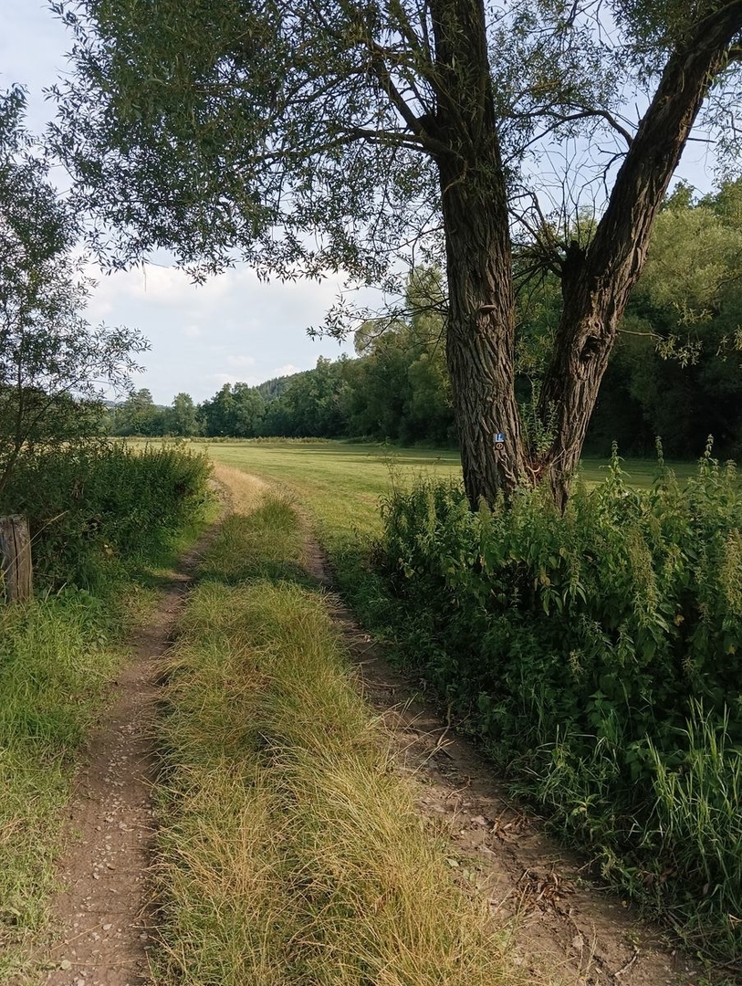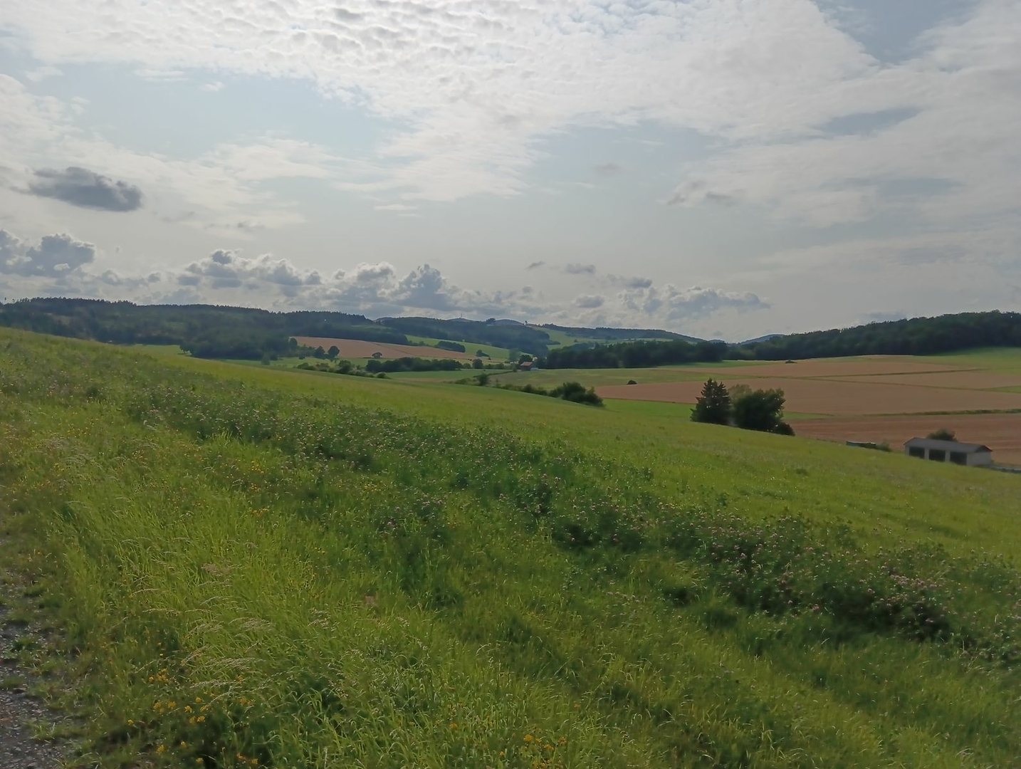 nach einem ersten kleinen Anstieg führt der Weg zwischen Feldern und Weiden