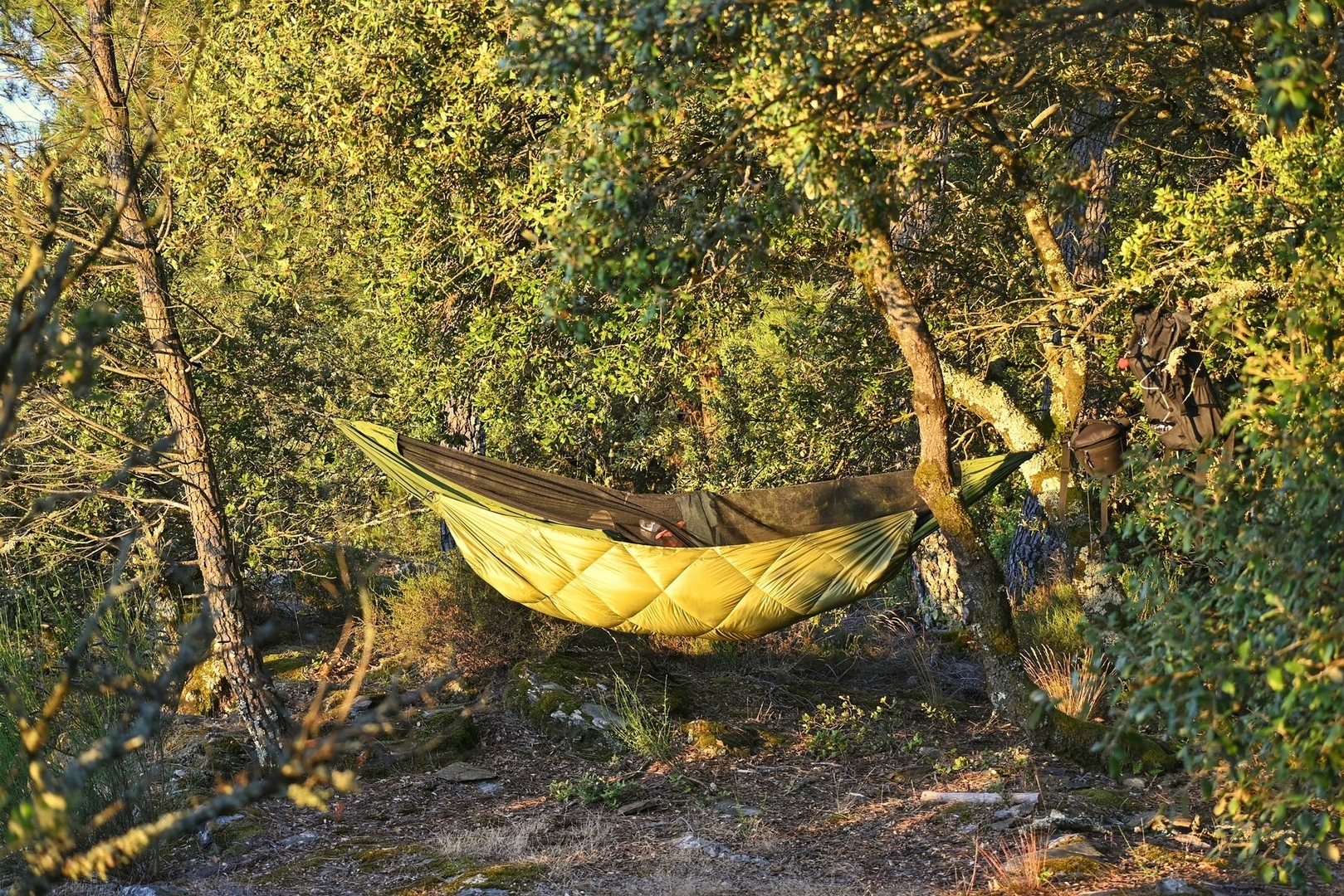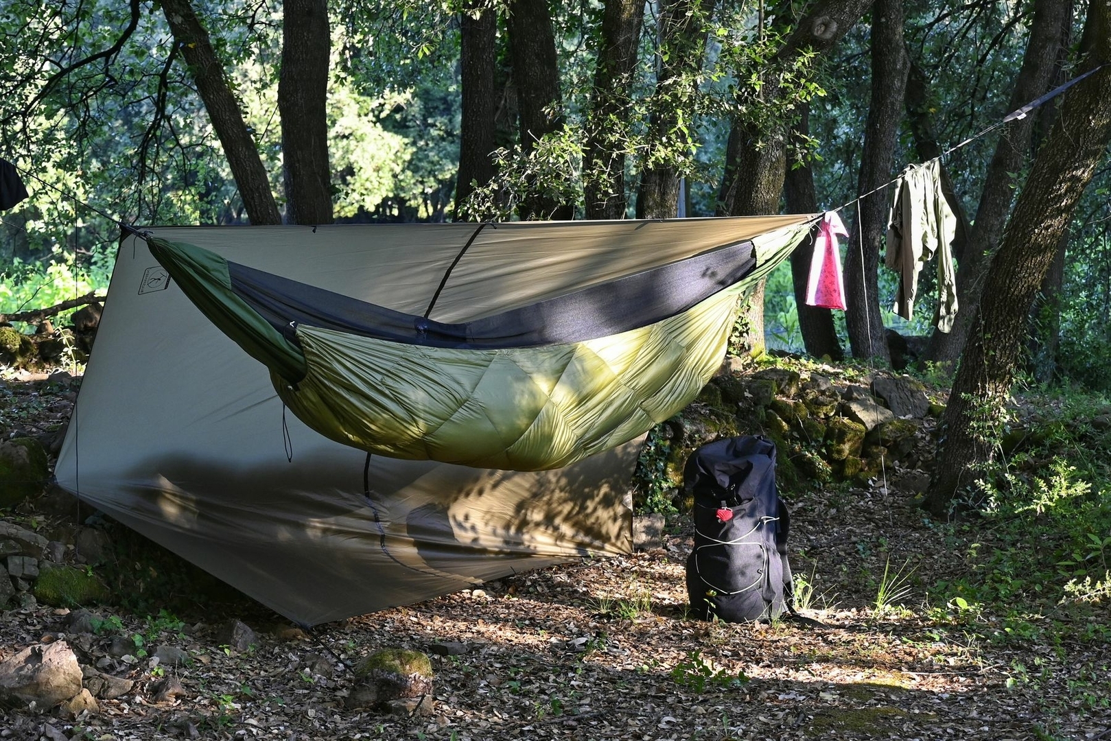 Für die Ausrüstung habe ich hier im Forum viele Tipps erhalten. Besten Dank dafür! Besonders gelohnt hat sich in meinen Augen der Tipp mit dem Cold Soaking. Ich hatte das vorher überhaupt nicht auf dem Schirm, habe es dann auf eure Hinweise hin 1x ausprobiert und dann einfach durchgezogen, obwohl ich es mir nicht so recht vorstellen konnte. Zu meinem Favoriten entwickelte sich Couscous mit getrocknetem Gemüse, Linsen und Quinoa (gibt's in Frankreich so zu kaufen) gemischt mit einer Gemüsecrèmesuppe. Besonders überzeugt hat mich, dass ich das ganze Cold Soaking direkt in der Hängematte vollziehen konnte; ich musste also nicht mit einem Kocher hantieren und dafür evtl. die Hängematte verlassen (oder mir einen ebenen Hängeplatz suchen, wo ich den Kocher sicher neben die Hängematte hätte stellen können), sondern konnte bequem liegen bleiben. Je nach Gebiet waren Kocher sowieso wegen Waldbrandgefahr verboten.