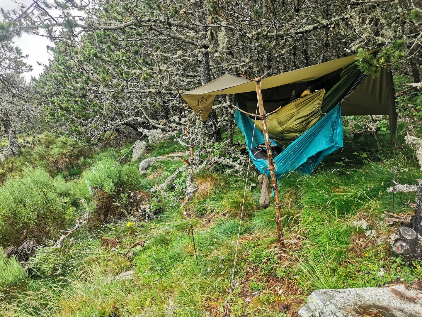 Als dann für eine Nacht Gewitter angesagt waren, konnte ich mein Bushmen-Tarp testen.