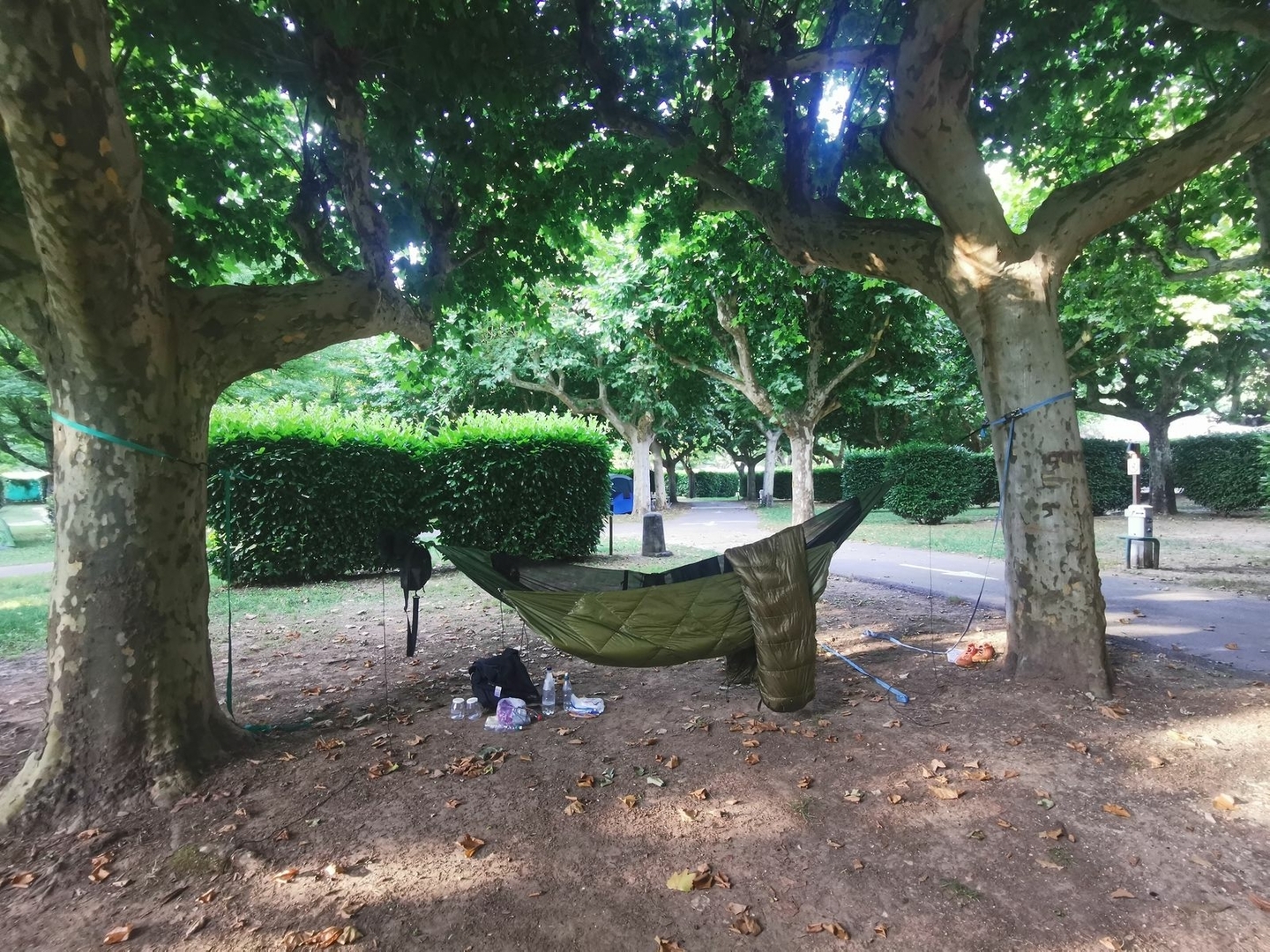 • Ich bin bis vorgestern von Nîmes nach Genf gewandert und dabei hauptsächlich dem Weitwanderweg "Sur le pas des Huguenots" gefolgt. Immer wieder wich ich aber auch davon ab, wo es mich dünkte, dass es landschaftlich schöner sein könnte. Von 23 Nächten habe ich 21 in der Hängematte verbracht, 2 davon auf Campingplätzen, den Rest ausserhalb offizieller Strukturen. Es scheint in Frankreich zwischen Camping und Biwakieren unterschieden zu werden. Während Wildcampen häufig verboten ist, wird biwakieren meist toleriert, sofern es von Unmotorisierten praktiziert wird, nicht mehr als 50m neben den offiziellen GR-Routen ohne Zelt oder in einem Zelt in dem man nicht stehen kann und maximal während einer Nacht von 19 Uhr bis 9 Uhr stattfindet. Für den Nationalpark in den Cévennen habe ich z.B. dieses Dokument gefunden. Für den Naturpark im Vercors gilt ein ähnliches Reglement und am Wegrand habe ich Schilder gesehen, die z.T. das Campieren verbieten und z.T. das Campieren und Biwakieren.