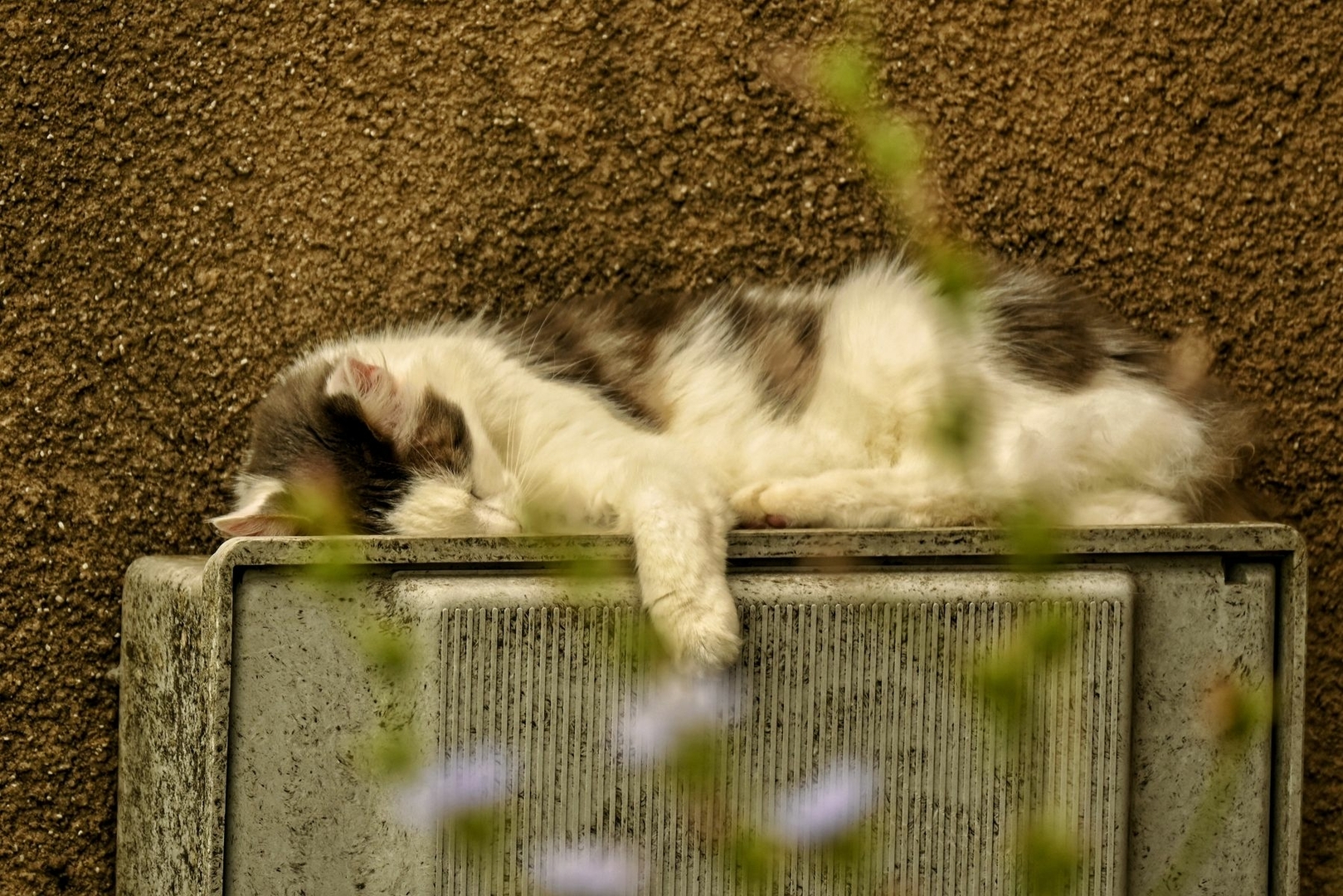 Einen geeigneten Hängeplatz in diesem Rayon zu finden, war meistens kein Problem, allerdings waren die Plätze recht häufig in dichtem Wald oder Busch und dementsprechend ohne Aussicht dafür mückenverseucht. Auch wenn ich natürlich lieber mit etwas Luft, Licht und Aussicht um mich rum abhing, störten mich meine Buschplätze, wenn ich mal hing, kaum. Denn nach einem langen Tag auf den Füssen, verliess ich die Hängematte eh nur noch zum pinkeln, also einmal um ca. 22 Uhr und dann wieder um 7 Uhr, unmittelbar bevor ich aufbrach. Irgendein Problem mit Menschen hatte ich in all den Nächten nie, es hat mich wahrscheinlich eh nie jemand bemerkt. In einer Nacht auf einem Campingplatz gab es aufsässige Wildschweine, die ich beim ersten Mal wohl nicht mit genügend Nachdruck vertrieben hatte, es dann aber beim zweiten Mal begriffen, dass das jetzt mein Platz ist. In einer anderen Nacht ist ein Reh fast mit mir kollidiert: Ich hörte es knacken im Busch und das Knacken kam näher. Weil mich Wunder nahm, was da kommt, verhielt ich mich still und machte meine Kamera bereit. Als das Reh dann mit Vollgas auf mich zukam und gerade noch einen Haken schlagen konnte, bevor es mit mir zusammenstiess, löste der Blitz leider nicht aus - oder vielleicht auch zum Glück für das Reh. In einer dritten Nacht war ebenfalls viel Betrieb im Wald. Da schlich mehrfach etwas Geschmeidiges um meine Hängematte, das offensichtlich durch die Anwesenheit eines Menschen nicht irritiert war. Ich konnte mir beim besten Willen nicht vorstellen, was das sein könnte, bis ich dann am anderen Morgen wenige 100m später an einem Haus vorbei kam, vor dem sich die Katzen in der Sonne räkelten.