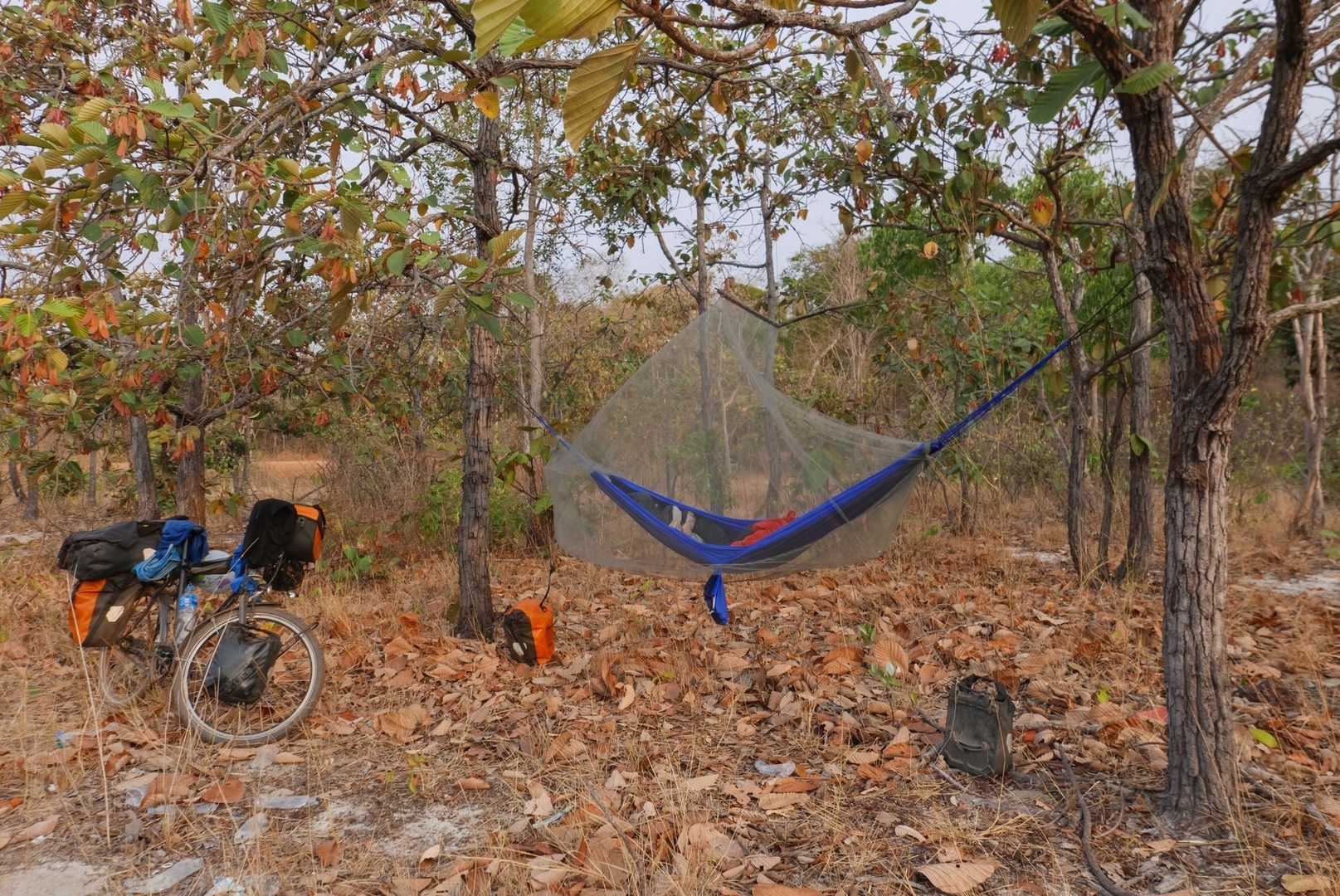 Meine bisherigen Hängematten Erfahrungen beziehen sich vor allem auf die Zeit während meiner Fahrradreise 2016 und 2017 von Deutschland nach Singapur. Hier habe ich in der Zeit in Südostasien viele Nächte in meiner Amazonas SilkTraveller (https://www.amazonas-ultra-light.com/silk-traveller) verbracht. Hierbei brauchte ich fast nie Isolation von unten und wenn überhaupt habe ich mal meinen Schlafsack hinzugenommen. Auch das Mückennetz war eine ziemlich improvisierte Konstruktion aus dem Sea to Summit Nano Pyramid Net Double, was ich dabei hatte um mich in Unterkünften im Bett vor Mücken schützen zu können. (https://seatosummit.eu/de/products/na…=41699446259862)
