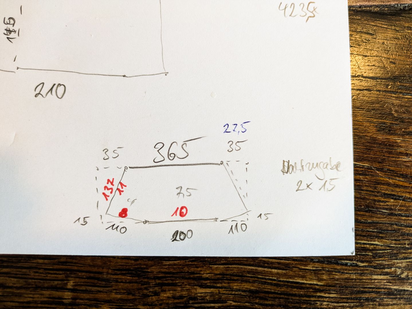 Welche Maße soll das Tarp haben? Mit Kettenlinie oder ohne? Und wenn ja, wieviel? Hier meine Konstruktionszeichnung:
