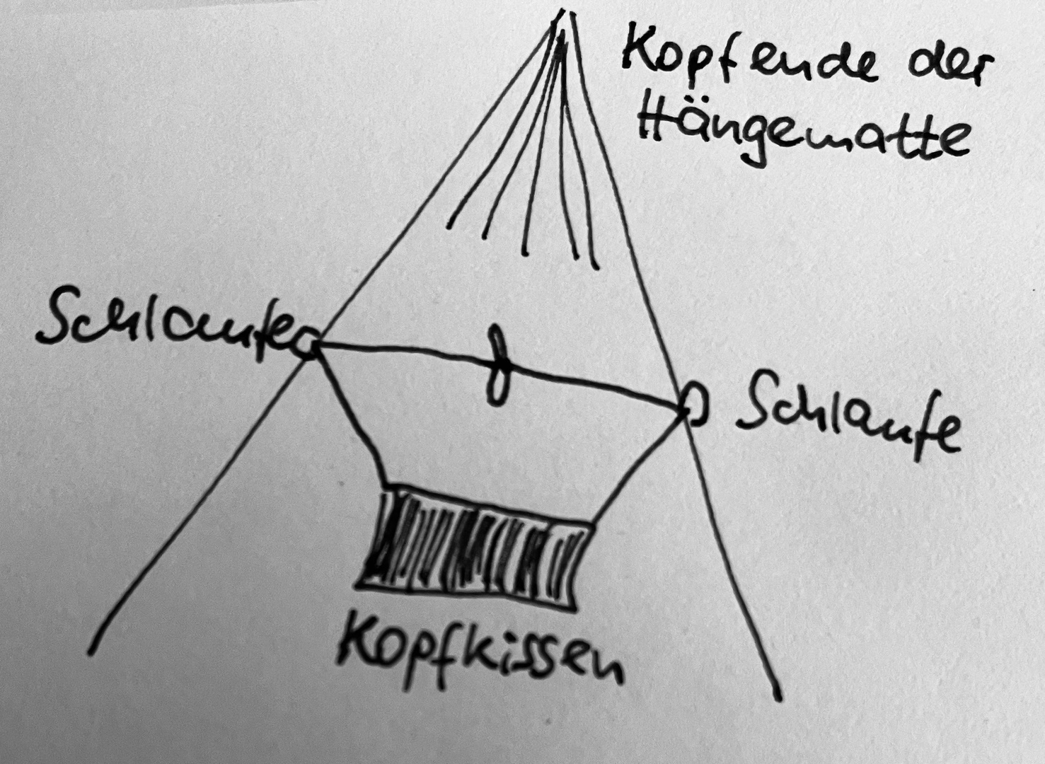 • Ich habe mir gerade überlegt, wie man das Herausfallen des Kopfkissens aus der Hängematte verhindern könnte.