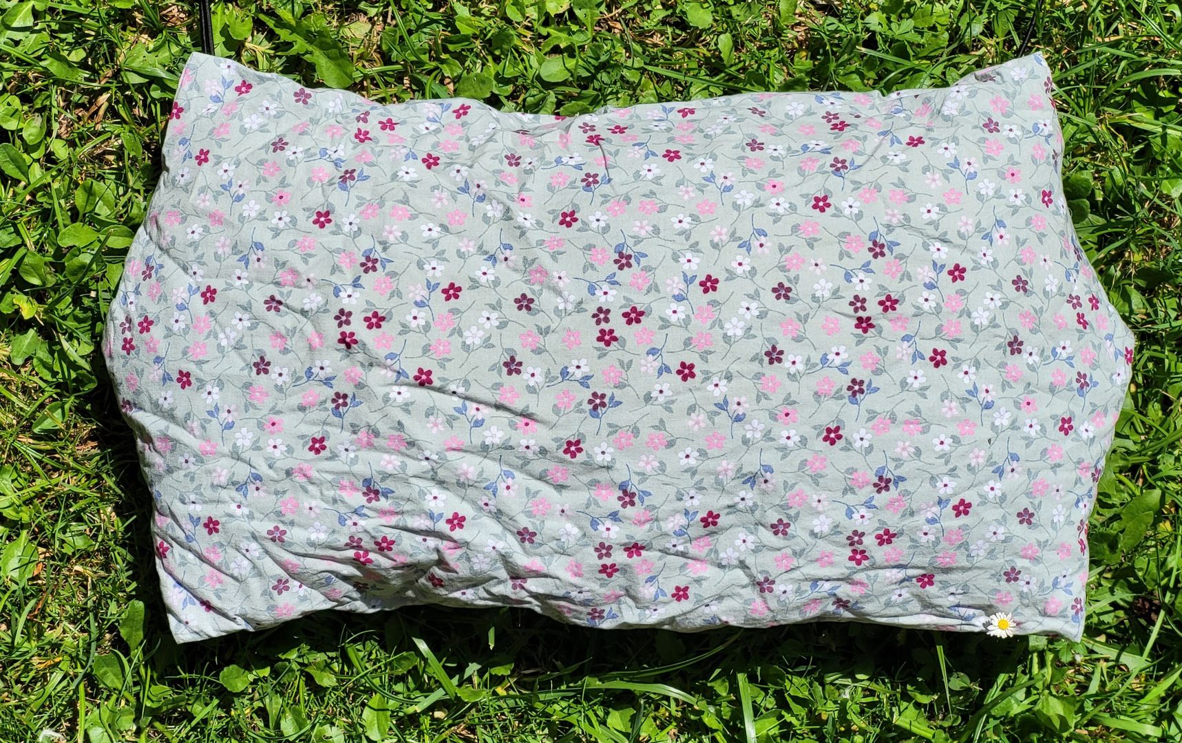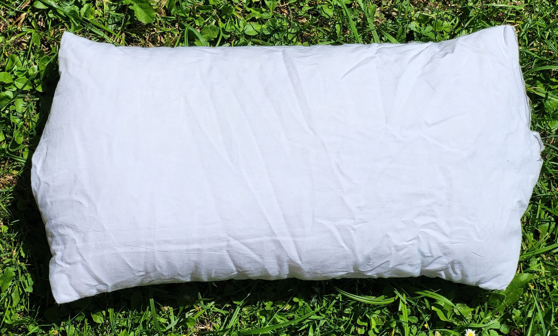 Wenn das Gewicht keine allzu große Rolle spielt, funktioniert auch ein 30 x 40 cm Sofakissen aus Daune wunderbar. Ich kann dieses von Daunen & Federn empfehlen. Alternativ: wenn du eine alte Daunendecke hast, die du nicht mehr brauchst, kannst du bei deiner örtlichen Bettenreinigung nachfragen, ob sie dir ein kleines Kissen damit befüllen können. Ich habe den Inhalt einer geerbten, zu dicken Daunendecke reinigen lassen, und unter anderem ein 30 x 40 cm Kissen damit befüllen lassen. Der Aufpreis zur Reinigung war gerade mal 9 €.