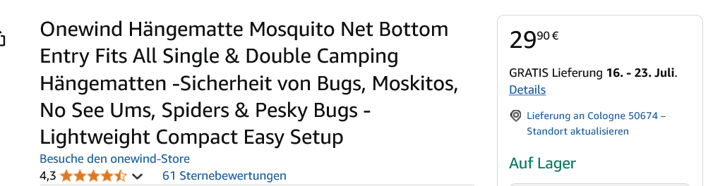 c) Tipps geben wo ich auf die Schnelle noch Tarp und Mückennetze bestellen kann mit schnellem Versand (Onewind scheidet wohl aus)