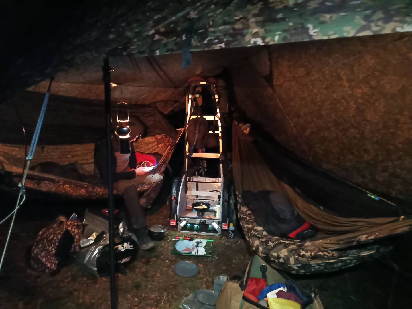 Ich habe: Ein komplettes Setup für mich, Für meine Frau Hängematte (inkl. Mückennetz), Aufhängung und Underquilt. Für die 2 Kinder (5 Jahre alt) habe ich je eine Amazonas UL Hängematte (aus unwissenden Zeiten).