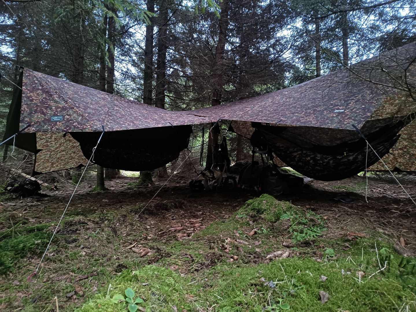 - ein breites Tarp was über die Kinderhängematten passt? Ich würde in der Regel gerne die beiden zusammen zwischen 2 Bäume hängen. Hierfür kann ich evtl. von einem Freund ein DD 3x4,5m Tarp bekommen. Das ist nicht optimal, aber sollte gehen?
