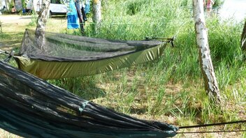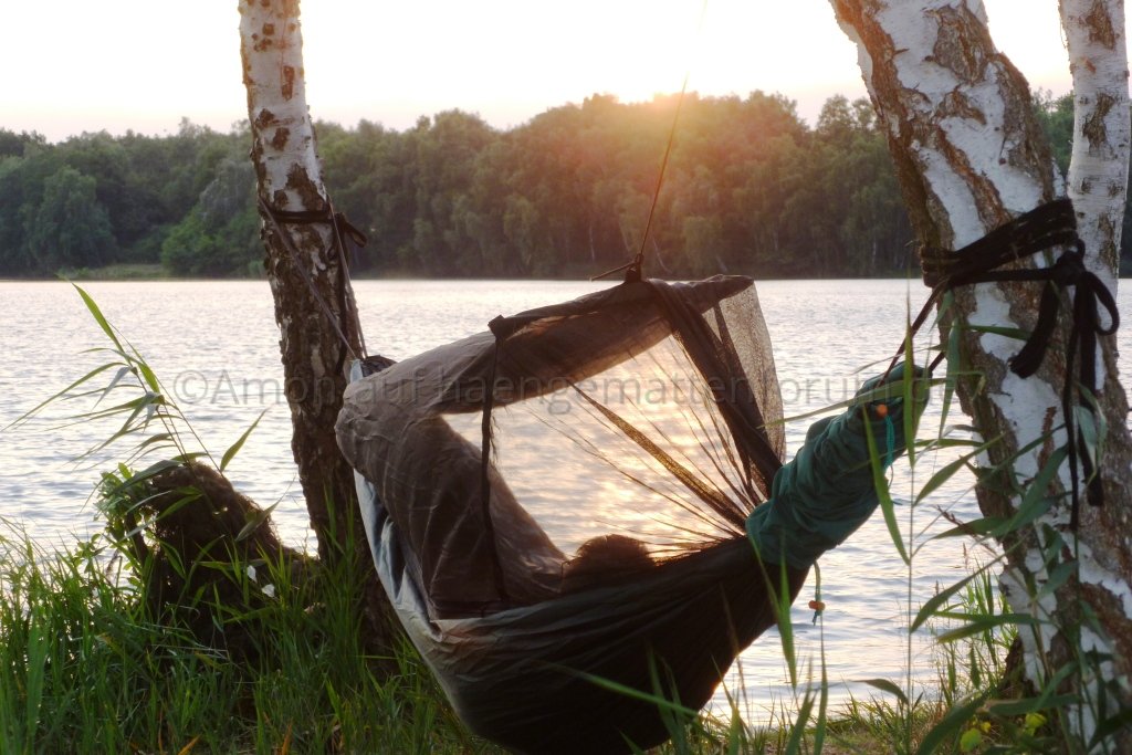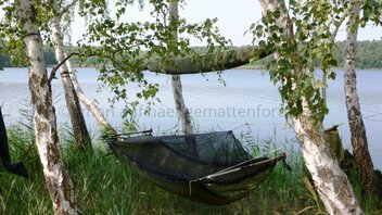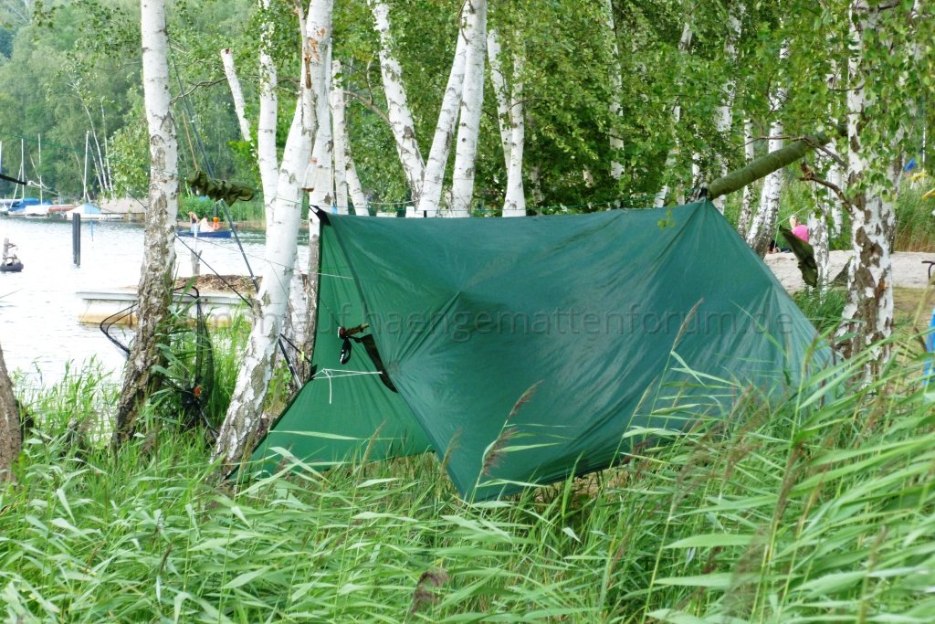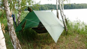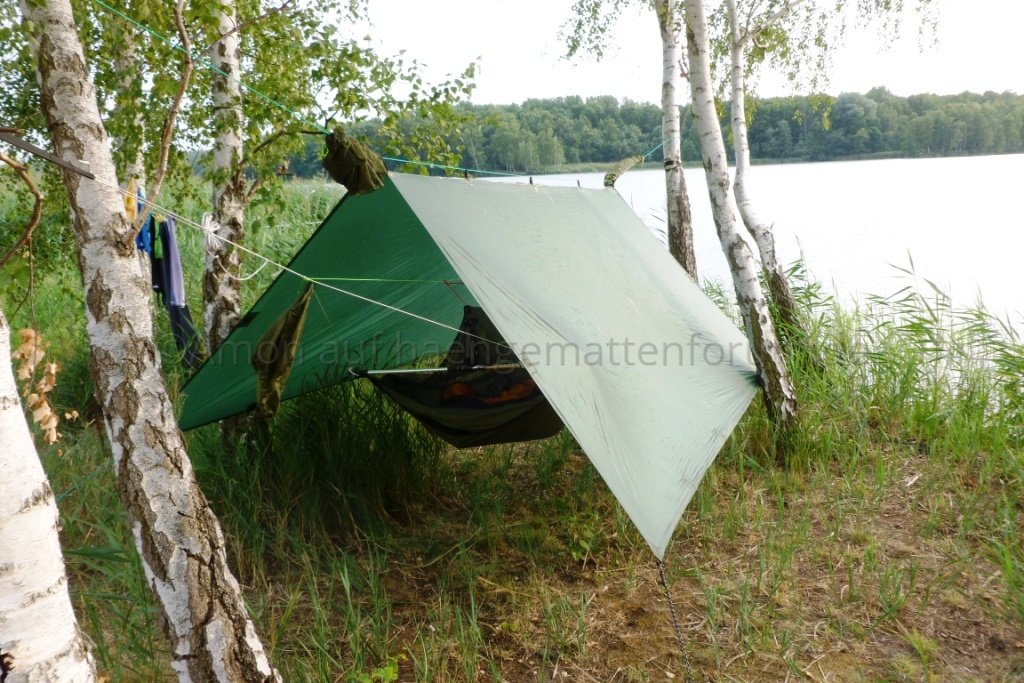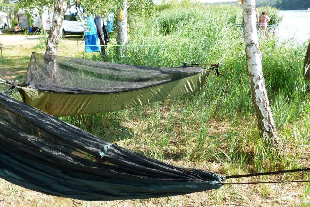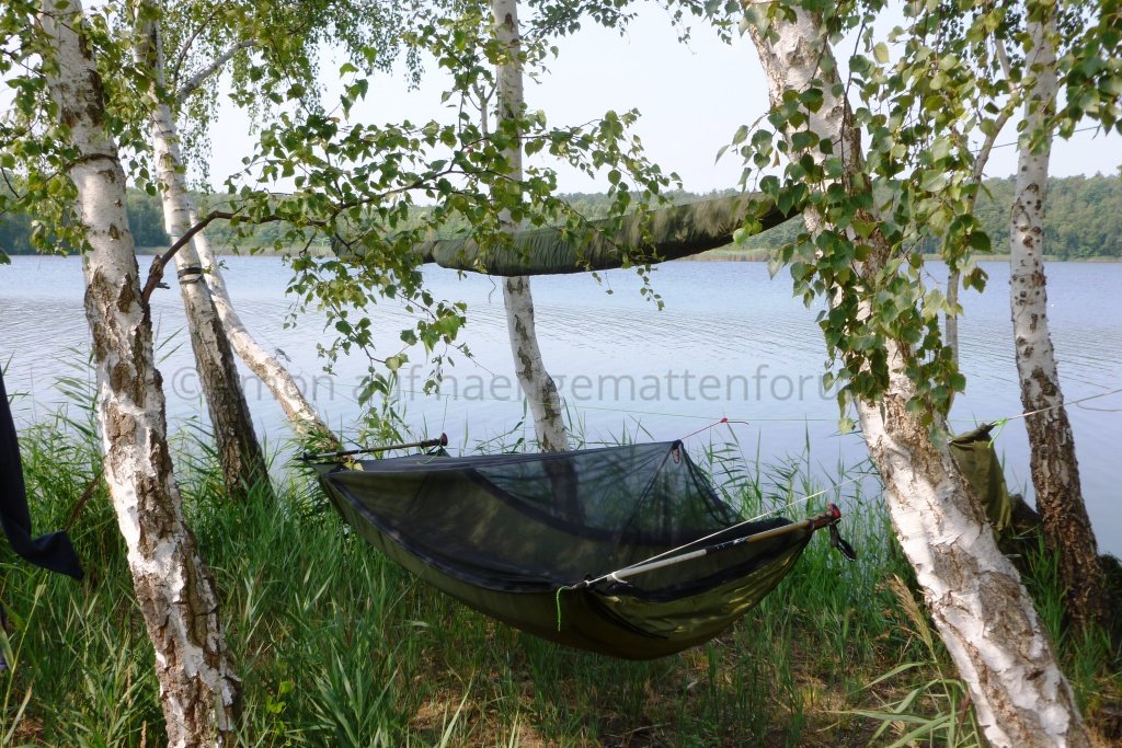 Nachdem ich meine Brücke nun 10 Tage am Stück probeliegen konnte bin ich immer noch sehr zufrieden. Im direkten Vergleich mit meiner DD... unvergleichlich was den Liegecomfort betrifft. Einziger Nachteil: ich brauche für den Aufbau (mit Wanderstöcken als Spreizen) deutlich länger als bei der DD, die ja im Original einfach mit zwei Bändern um den Baustamm gewickelt wird. Außerdem ist der notwendige minimale Baumabstand bei der DD deutlich geringer, ich aber bei lichterem Baumbestand wieder sehr eingeschränkt.