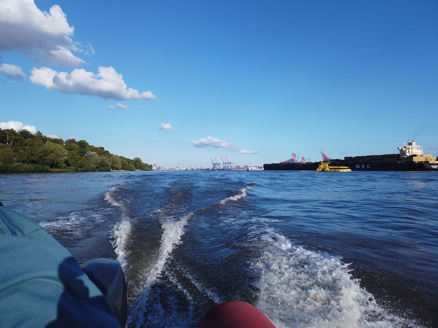 Der beste Kapitän und ich waren Anfang September `25 von Schwerin nach Hamburg mit dem Gummiboot unterwegs.