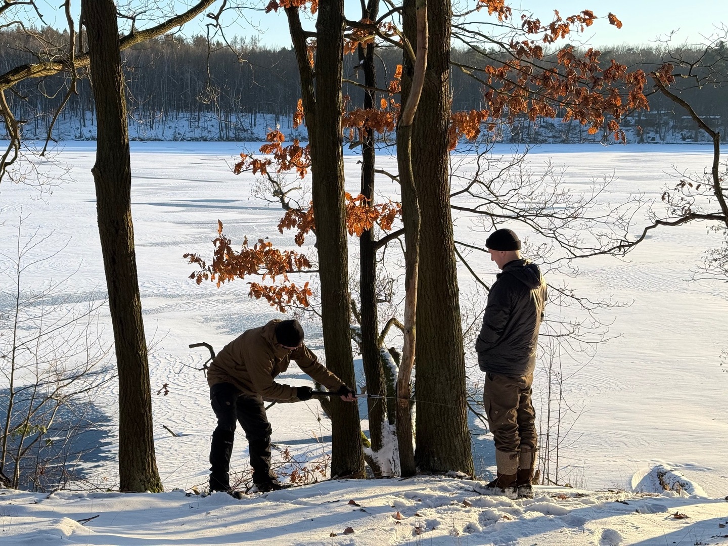 Winter Hang am zugefrorenen Lieblingssee in Brandenburg.