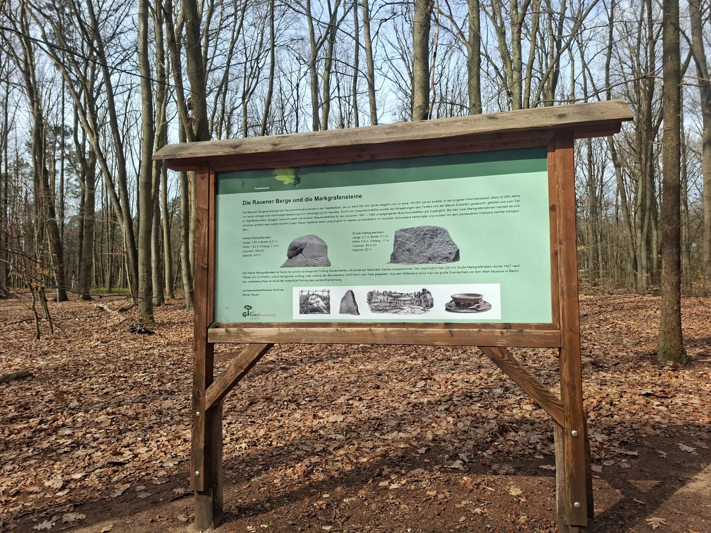 Die Rauener Berge liegen zwischen Fürstenwalde Spree und Bad Saarow und bieten eine schöne Abwechslung im Gelände. Dort liegen eindrucksvolle Findlinge und der steinerne Tisch, von dessen besonderer Aussicht schon Fontane zu berichten wusste. Nun stehen dort hohe Bäume drum herum, aber ein Stück weiter steht dafür ein Aussichtsturm.