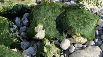 Bei Ebbe kamen merkwürdige grün-behaarte Wesen zum Vorschein: