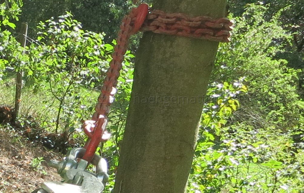 Um den Baum zu schonen, wird empfohlen, die Kette mindestens 2 x um den Baum zu wickeln, Baumkuschler werden aber von sich aus das Minimum bei 3 bis 4 mal sehen.:pleasantry: