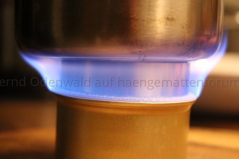 Im Winter sähe das sicher anders aus, zumal man da oft etwas damit kämpft, den Spiritus überhaupt zum Brennen zu bekommen, das Wasser meist kälter ist und auch der Brenner etwas mehr Zeit braucht, bis er richtig in Fahrt kommt. Da wäre ich dann wohl - wie beim Abkochen - bei 25:1 oder sogar nur 20:1.