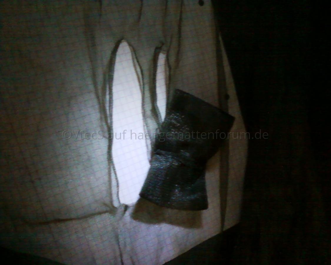 Da solltest du etwas vorsichtiger sein wie ich das letztemal. Auch dehnt sich der Stoff über Nacht noch ein wenig und man hängt irgendwann ordentlich durch.