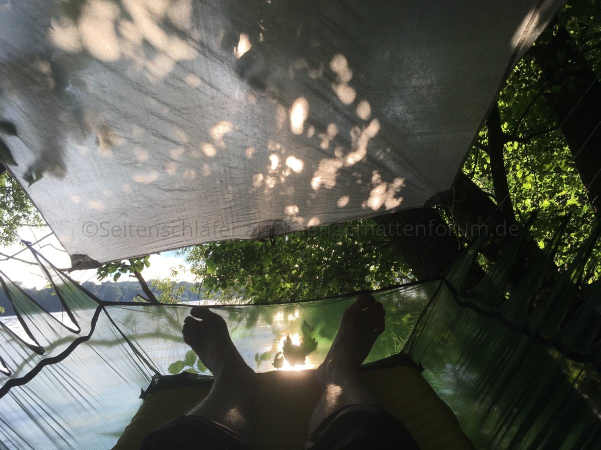 Das ist die Cross Hammock vom Hängemattentreffen, in der Mittagsfrost gelegen und Hammock Goofy übernachtet hat. Ich nehme sie immer dann mit, wenn ich eine gute Aussicht in die Gegend haben will.