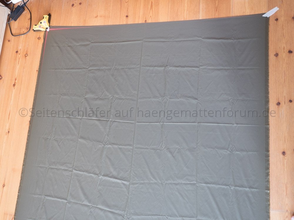 Beim Zuschnitt ist ein Winkellaser sehr hilfreich, denn man erhält den Stoff aus den Shops fast nie gerade abgeschnitten.