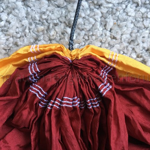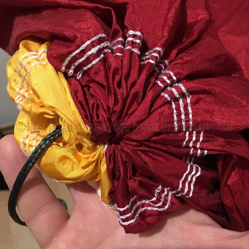 - die Matte wurde mit der Zeit schief, weil ich häufig quer drinhocke, im Zero-G-Fully-Suspended-Schneidersitz-Mode; und das immer zur selben Seite an der gleichen Stelle ---- aber, kann das sein? Hat Fallschirmseide solche Eigenschaften?Hat da jemand Rat, Information, Wissen, Abhilfe?