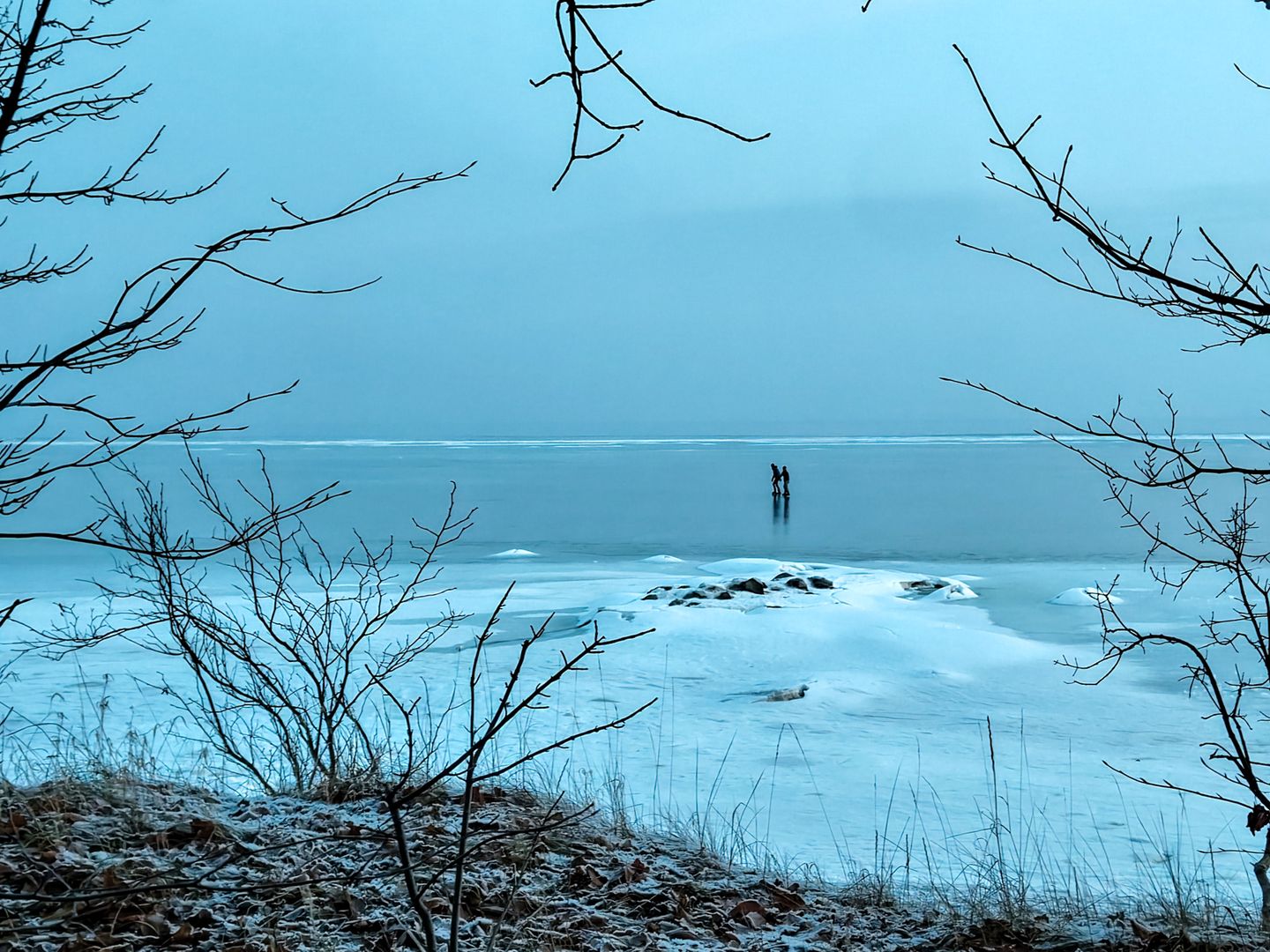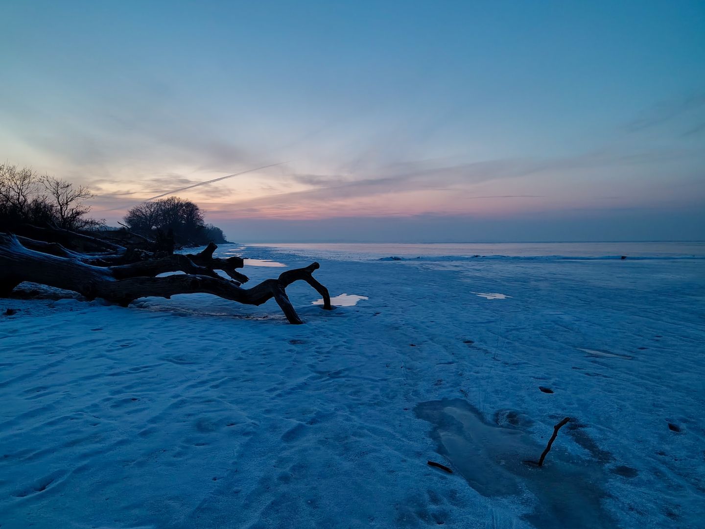 Bei ca. -4°C waren wir am Strand der zugefrorenen Ostsee, oder besser gesagt: des Greifswaldes Boddens.