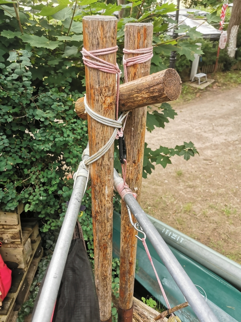 Hätte die Topstange ein Segment mehr, wäre das Gestell evtl auch für GE Hängematten zu nutzen.