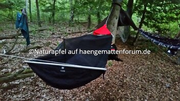 Gelegen habe ich gut, sogar sehr gut in der BH. Für mich neu, war aber das leichte Schaukeln. Getraut mich auf die Seite zu legen habe ich mich jetzt nicht, Ob das an der recht schmalen Isomatte lag weiß ich jetzt nicht. Aber gestört hats mich dann weiter auch nicht. Die Nacht war wie immer, wenn ich irgendwo das erste mal bin. Nach meinem Empfinden hatte ich nicht wirklich viel Schlaf bekommen, was aber nicht an der BH lag. Festgestellt habe ich am Morgen, dass ich das Kopfende doch ein wenig hätte höher hängen müssen. Ich bin leicht nach vorne gerutscht. Aber beim nächsten mal wird auch das besser.