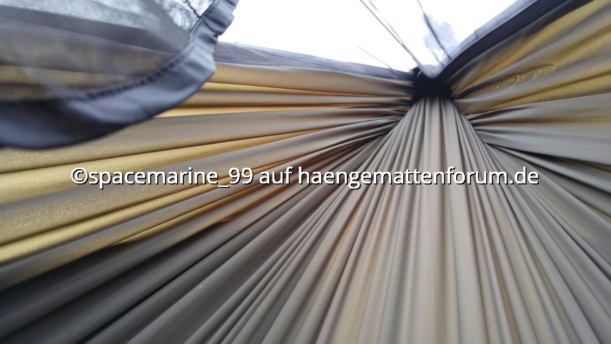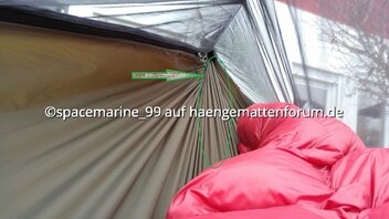 Negativ ist mir das Moskitonetz aufgefallen. Nicht weil es nicht dicht o.ä. wäre, sonder weil man es nicht komplett "zurückklappen"kann, so dass man ohne Mückennetz in der Matte liegen könnte. Man kann es zwar umschlagen, allerdings nur zu ca. 2/3. Das letzt Drittel steht dann ziemlich unter Spannung.