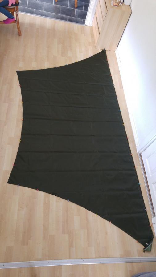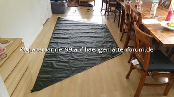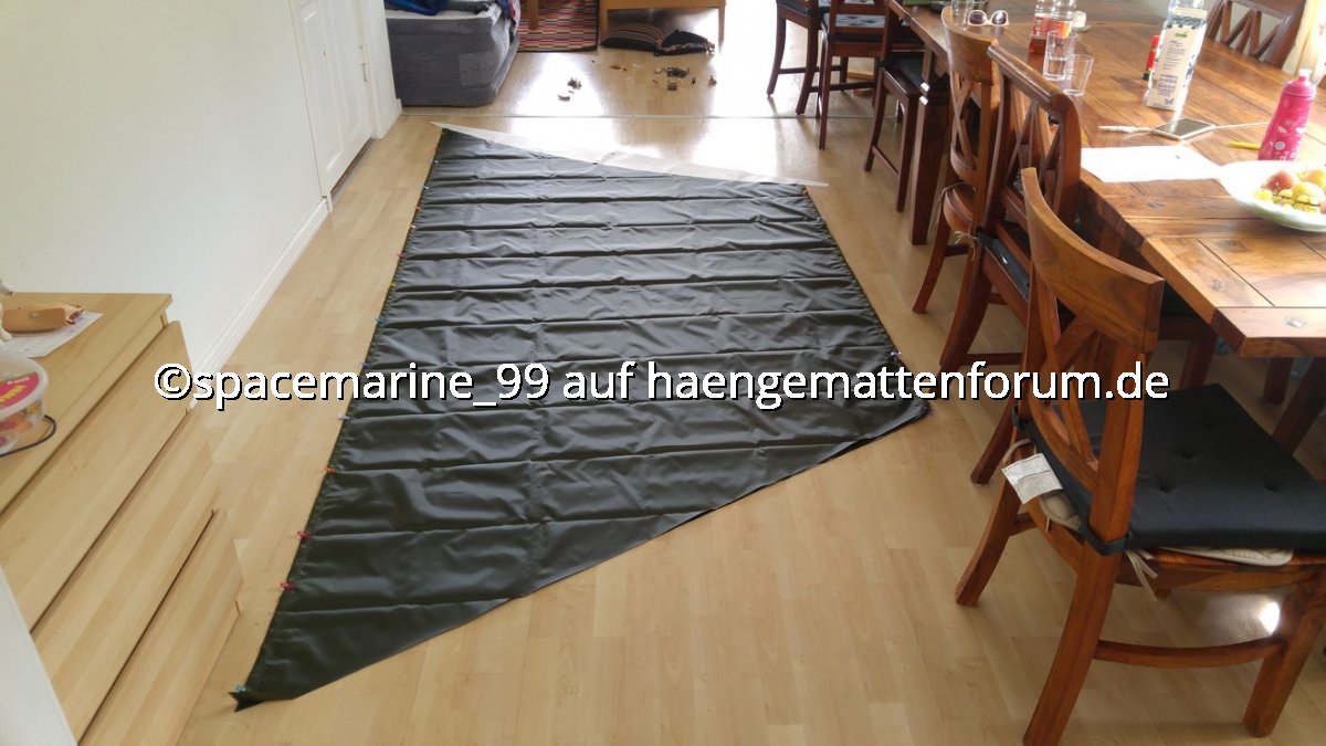 Nachdem vor kurzem Mittagfrost sein Tarp vorgestellt hat, möchte ich hier auch meines Vorstellen, welches gestern nach insg. ca. 12 Stunden Arbeit fertig geworden ist (hab ja grad Urlaub). Der Schnitt ist der gleiche, den auch Mittagfrost hergenommen hat - Danke für die Links. Auch die Nähweise habe ich im großen und ganzen von ihm übernommen und so halte ich mich mit einer Beschreibung kurz, da es lediglich eine Wiederholung wäre ;-).