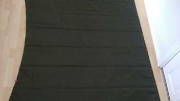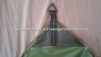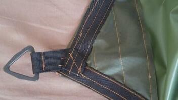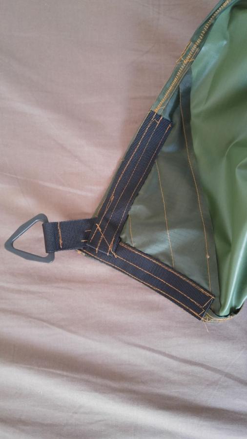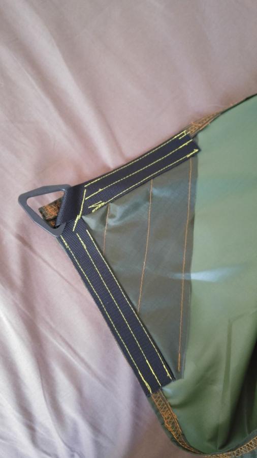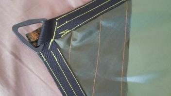 [USER="89"]echinotrix[/USER] und [USER="14"]Mittagsfrost[/USER] : Nachdem es für mich ein Testtarp war bzw. ist habe ich ein paar verschiedene Verstärkungen gemacht um hier das beste für das nächste Tarp herauszufinden und auch Erfahrungen um die Langzeitbelastungen auf den Stoff zu sammeln. Bei allen vier Ecken habe ich zuerst ein ca 30cm Stück Satinband in jede Richtung angenäht. Im Anschluss habe ich die Dreiecke zur Lastverteilung angenäht. Hierbei habe ich den gleichen Stoff als den vom Tarp hergenommen. Danach habe ich erst den Rollsaum gemacht, so dass man von dem Satinband nichts sieht. Zum Schluss habe ich dann einfaches Gurtband an den Ecken angenäht. Wie, das zeigen euch die Bilder