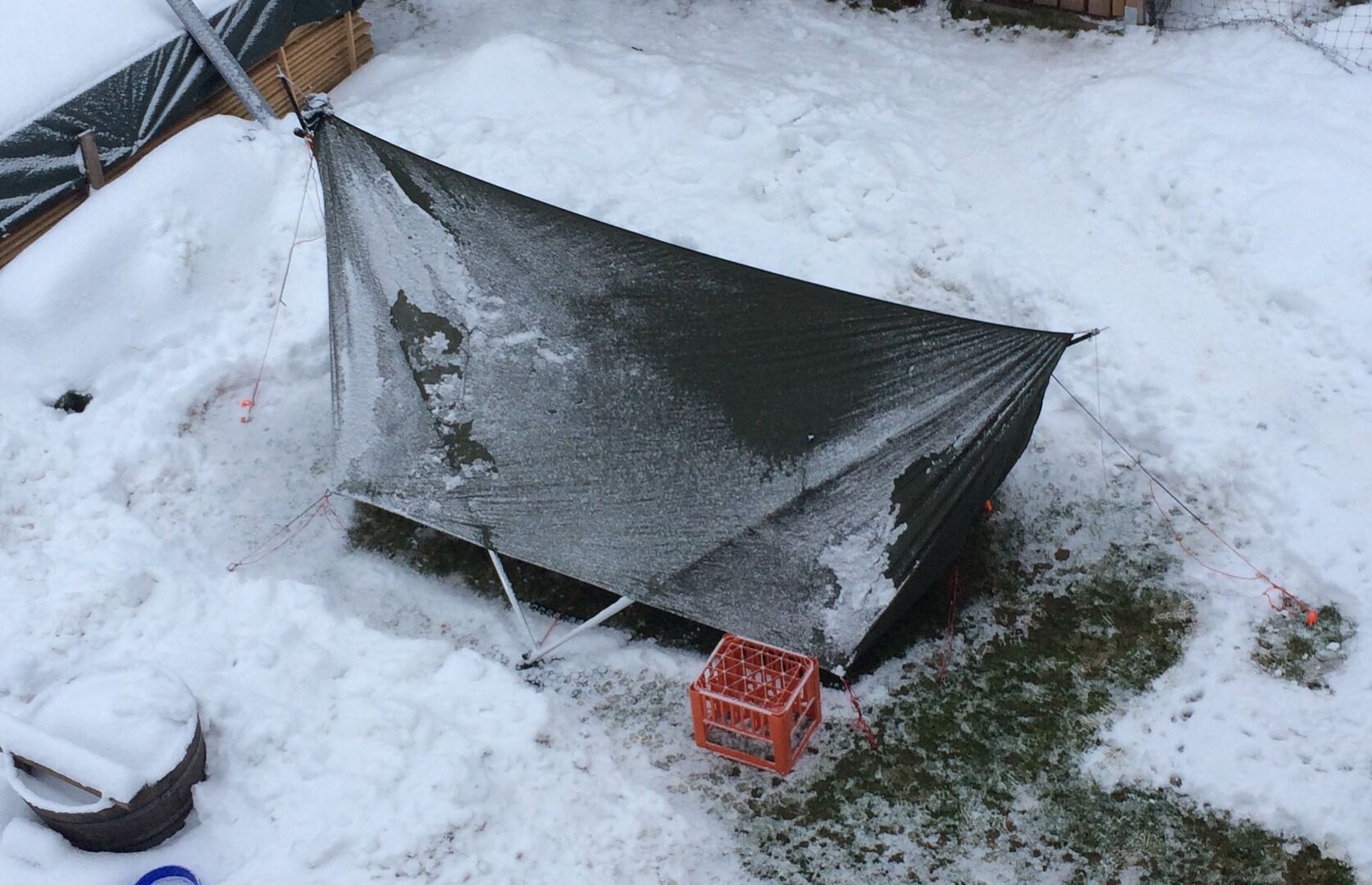 Tarp dran und versucht zu spannen